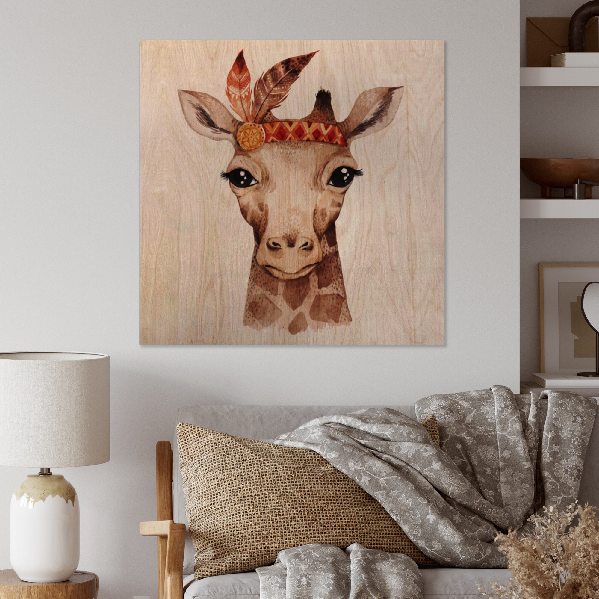 Designart 'Cute Giraffe Portrait for Kid' Traditional Wood Wall Art - Natural Pine Wood