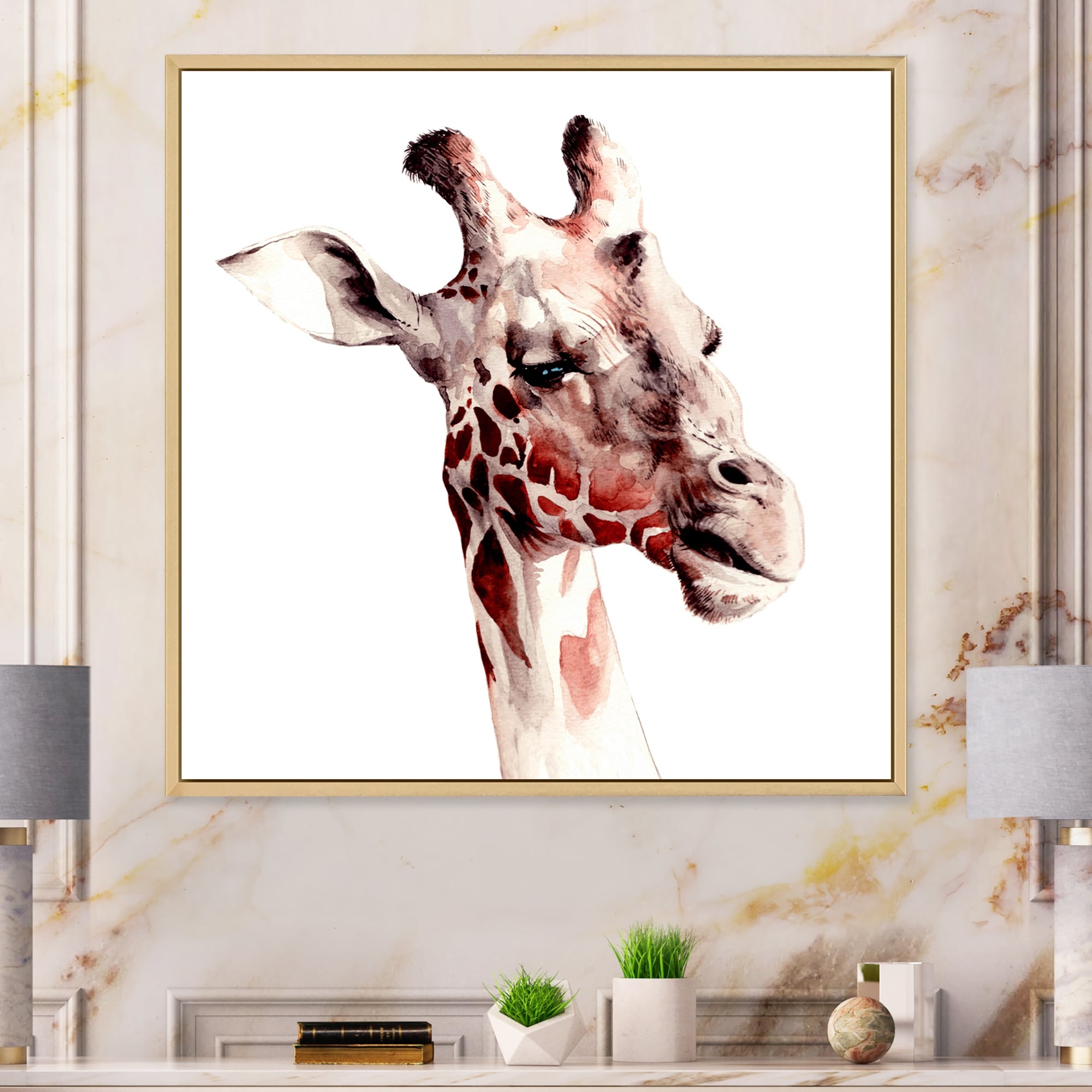 Designart "Portrait Of a Giraffe" Traditional Framed Canvas artwork
