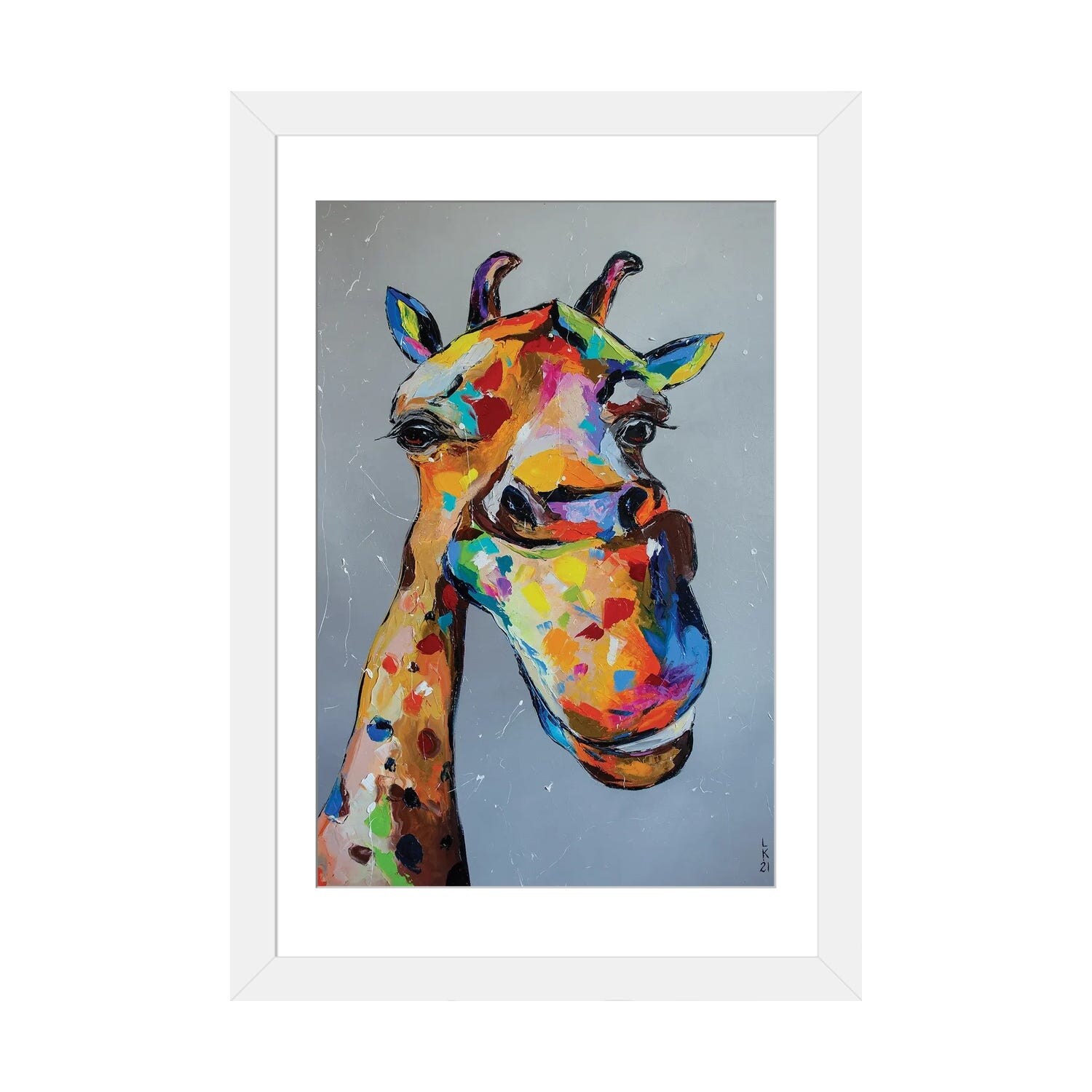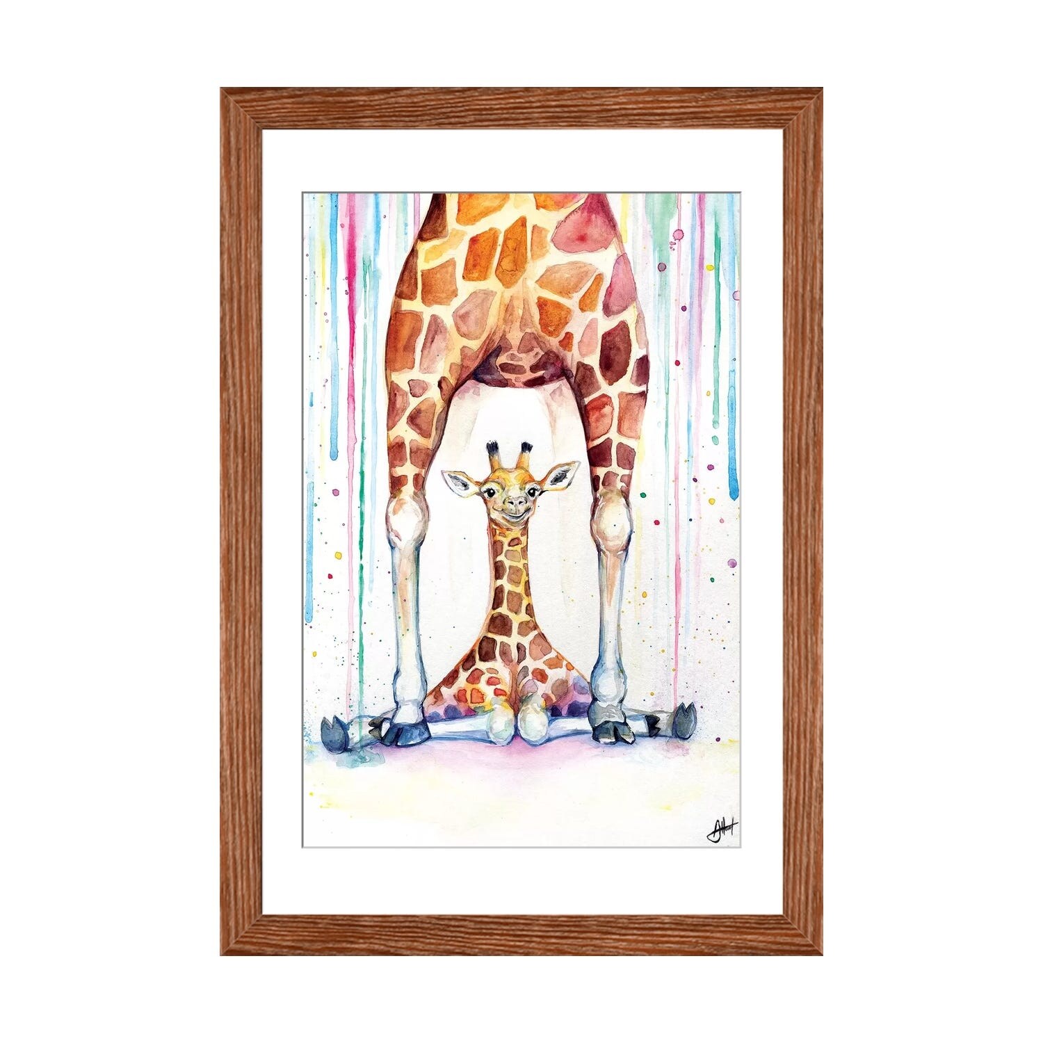 iCanvas "Rainbow Splash Giraffe I" by Fab Funky Framed