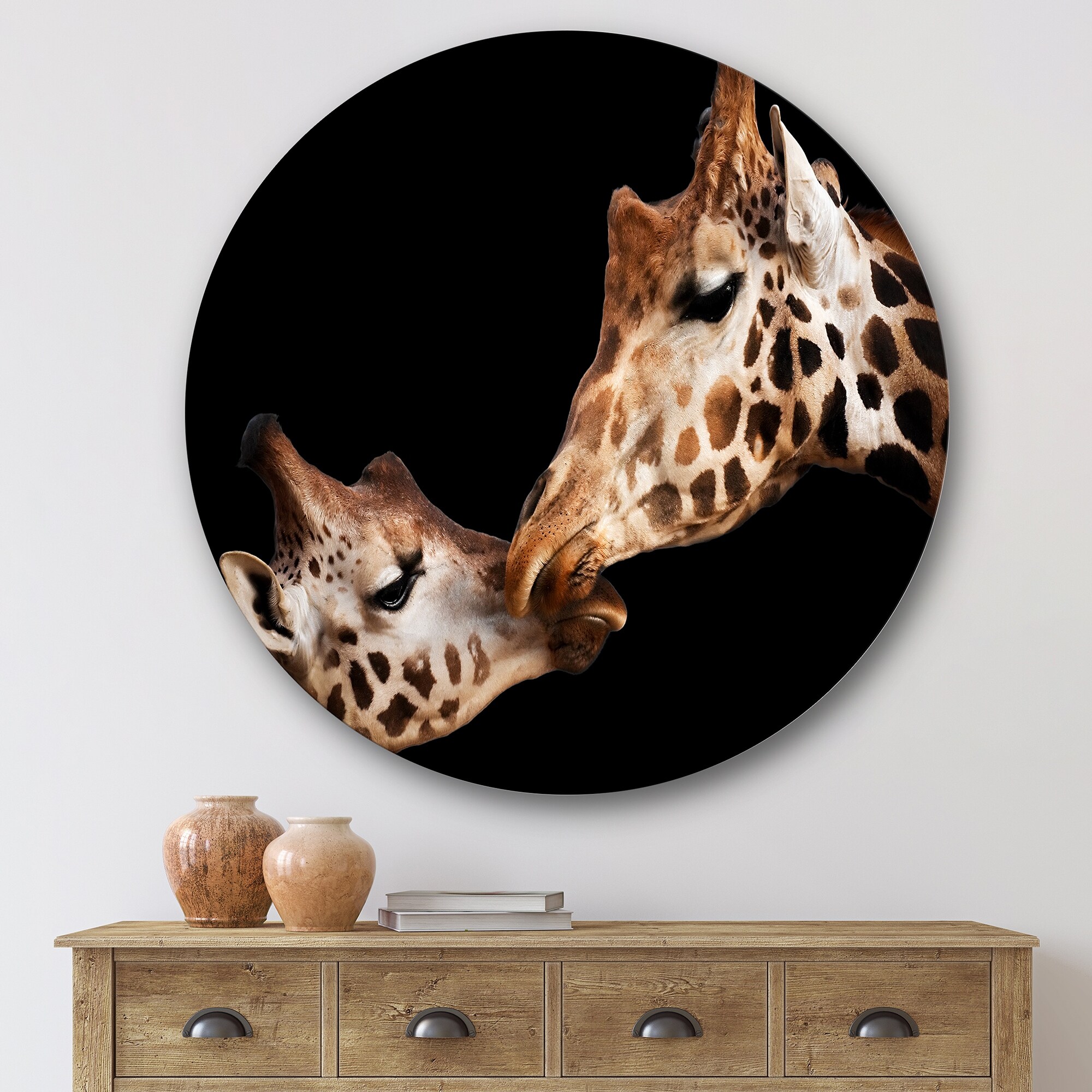 Designart 'Portrait Of Two Giraffes Kissing II' Farmhouse Metal Circle Wall Art