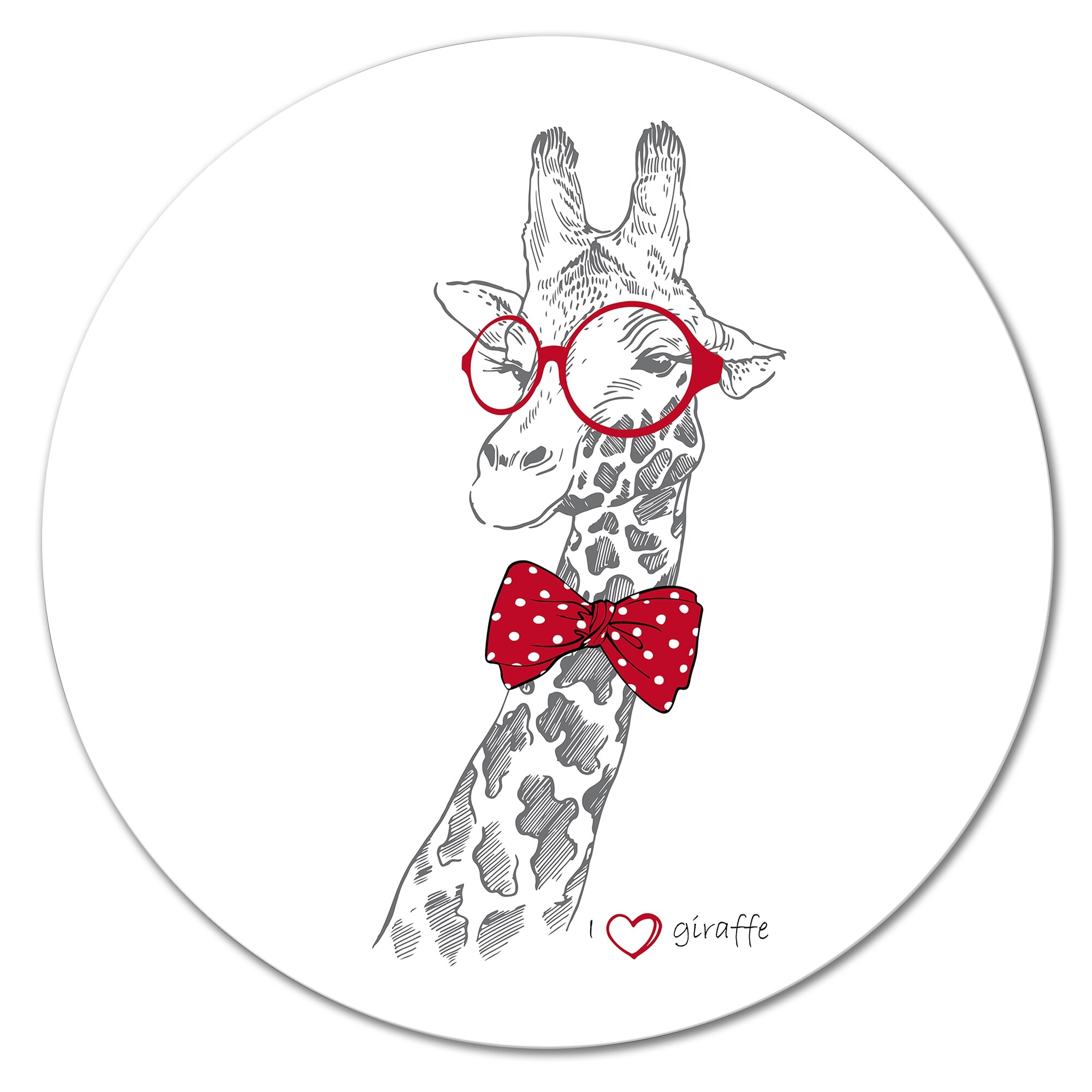 Designart 'Giraffe In Round Red Glasses' Animal Metal Circle Wall Art
