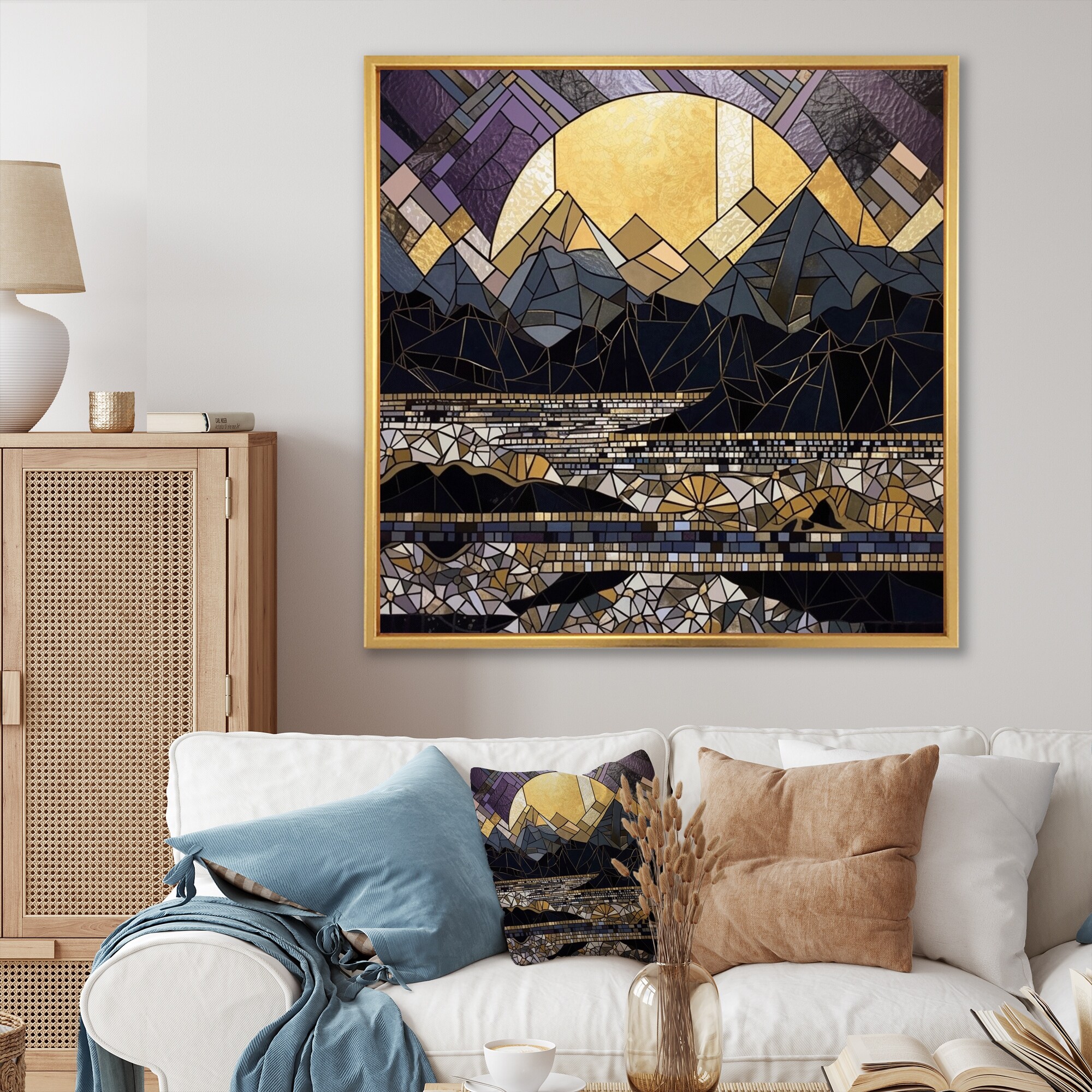 Designart "Gold Stained Glass" City Geometric Framed Wall Art for Living Room
