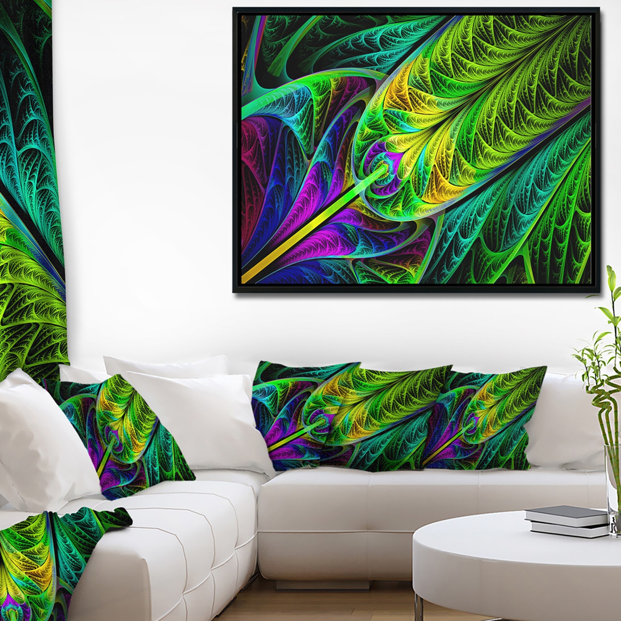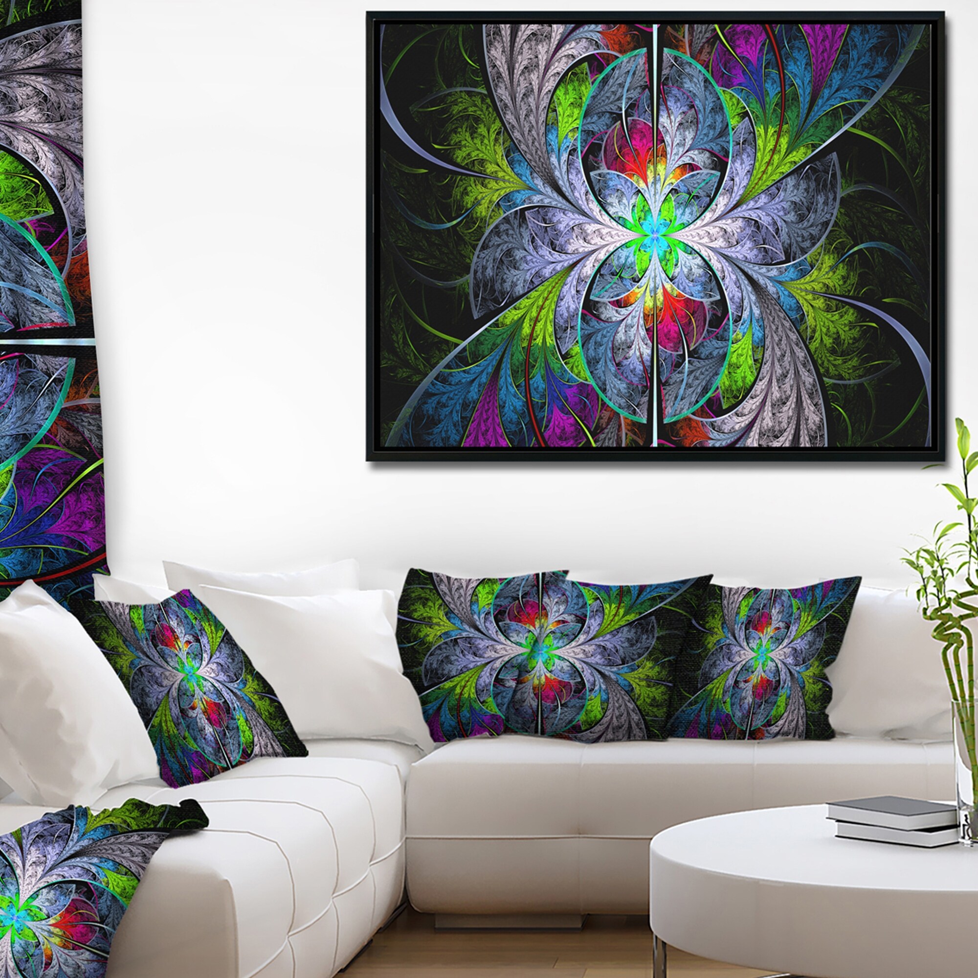 Designart "Multi Color Fractal Stained Glass" Abstract Wall Art Framed Canvas