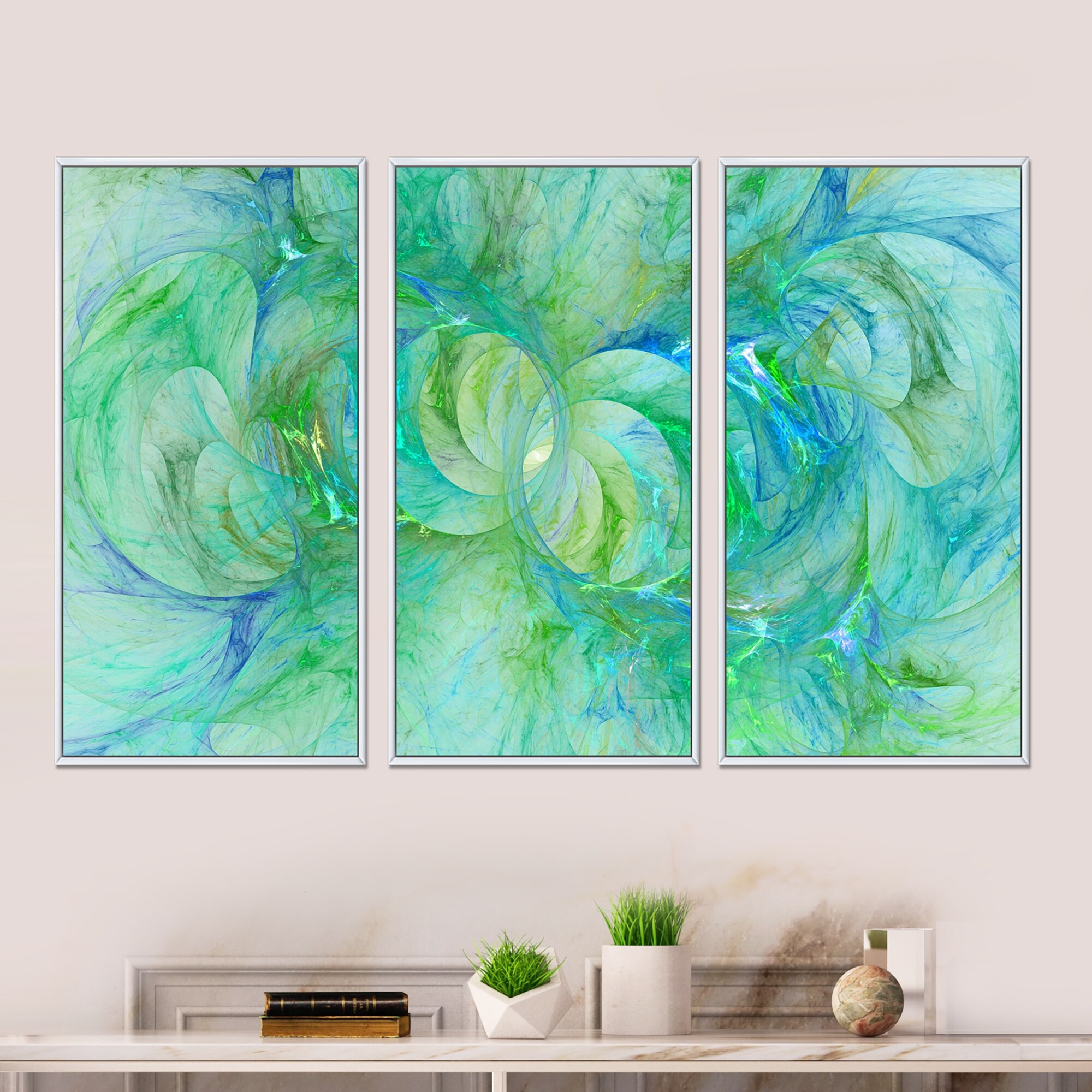 Designart "Green Blue Fractal Glass Texture" Abstract Wall Art on Canvas