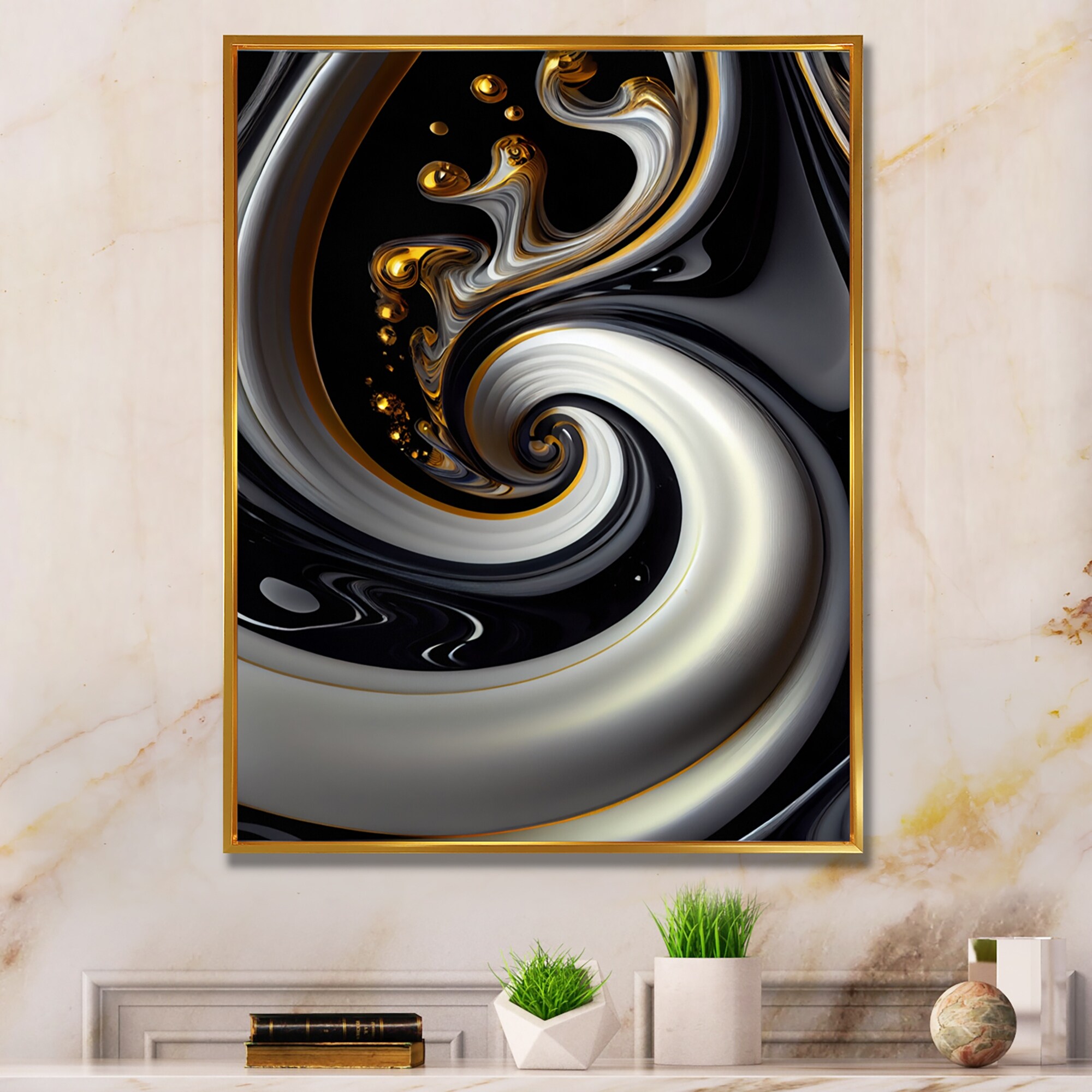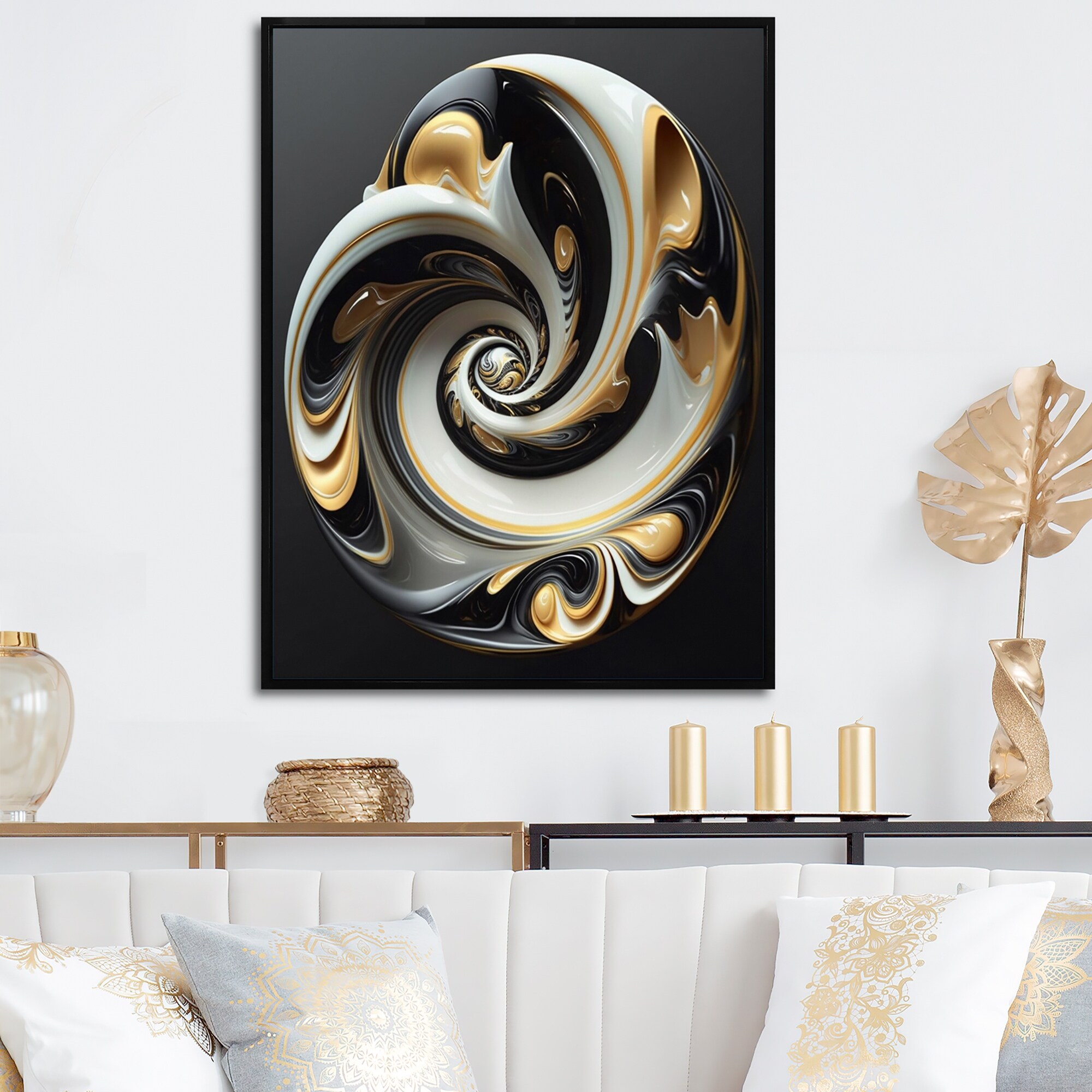 Designart "Gold Black And White Stained Glass IV" Modern Framed Canvas Art Print