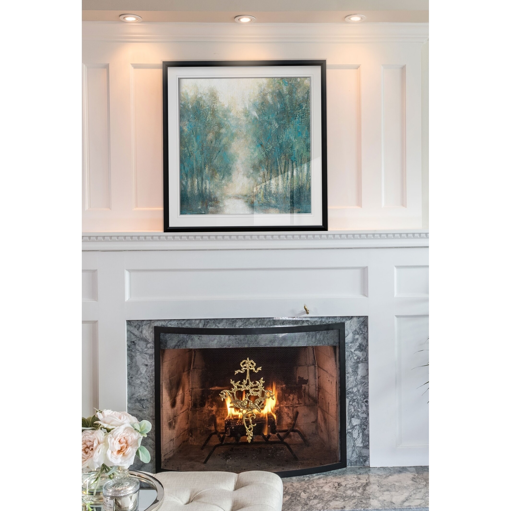 Lakeside Groves -Custom Framed Print - blue, white, grey, yellow, green, silver, gold