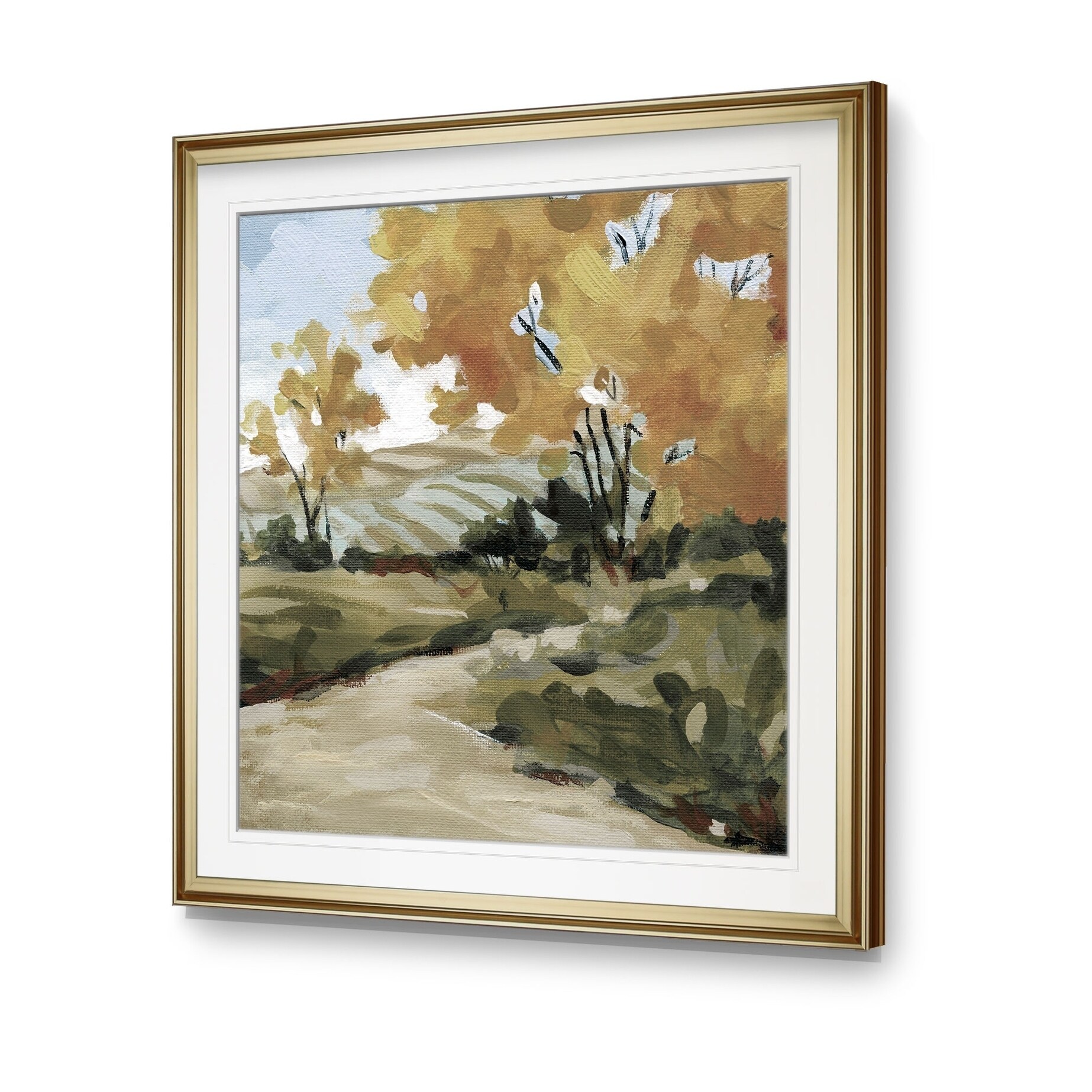 Pasture Pathway -Custom Framed Print - blue, white, grey, yellow, green, silver, gold