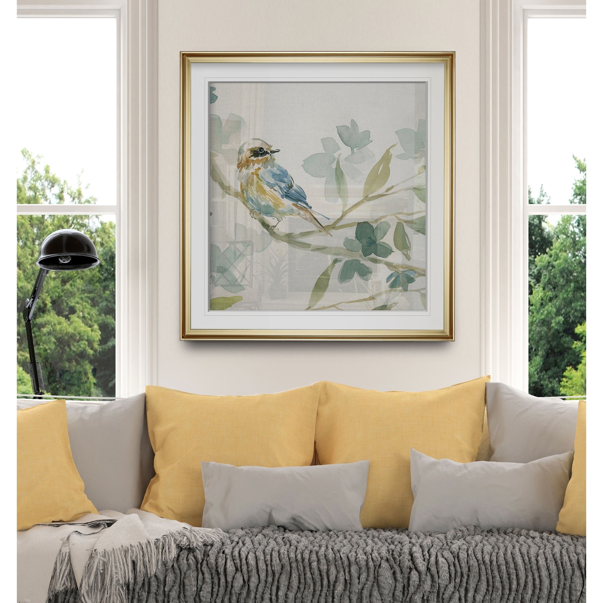 May Branches II -Custom Framed Print - blue, white, grey, yellow, green, silver, gold