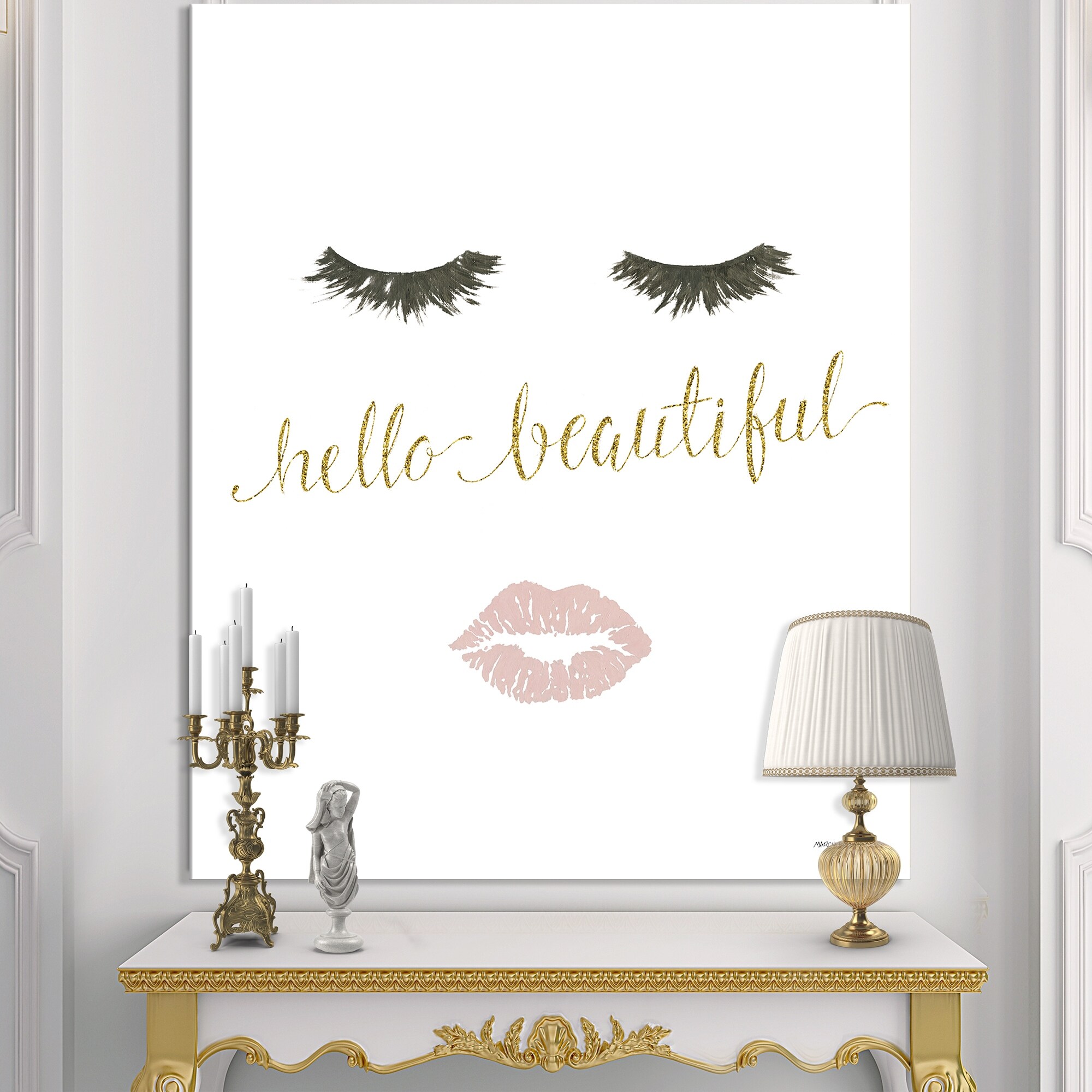Silver Orchid "fashion Glam Lips on Gold I" Posh & Luxe Canvas Artwork Print - Pink
