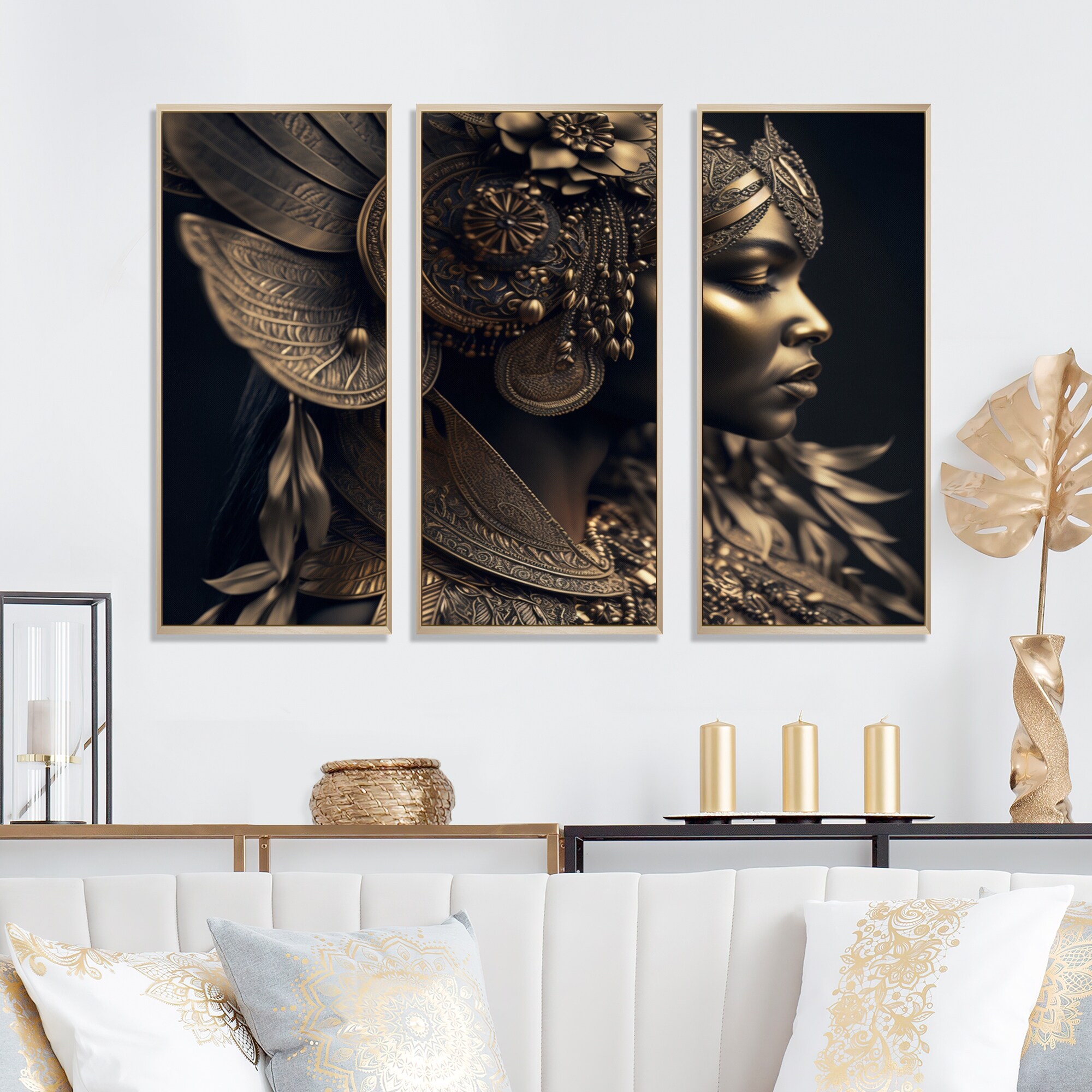 Designart "Vintage Silver And Gold Boho Accessories VI" Fashion Framed Canvas Wall Art Print - 3 Panels