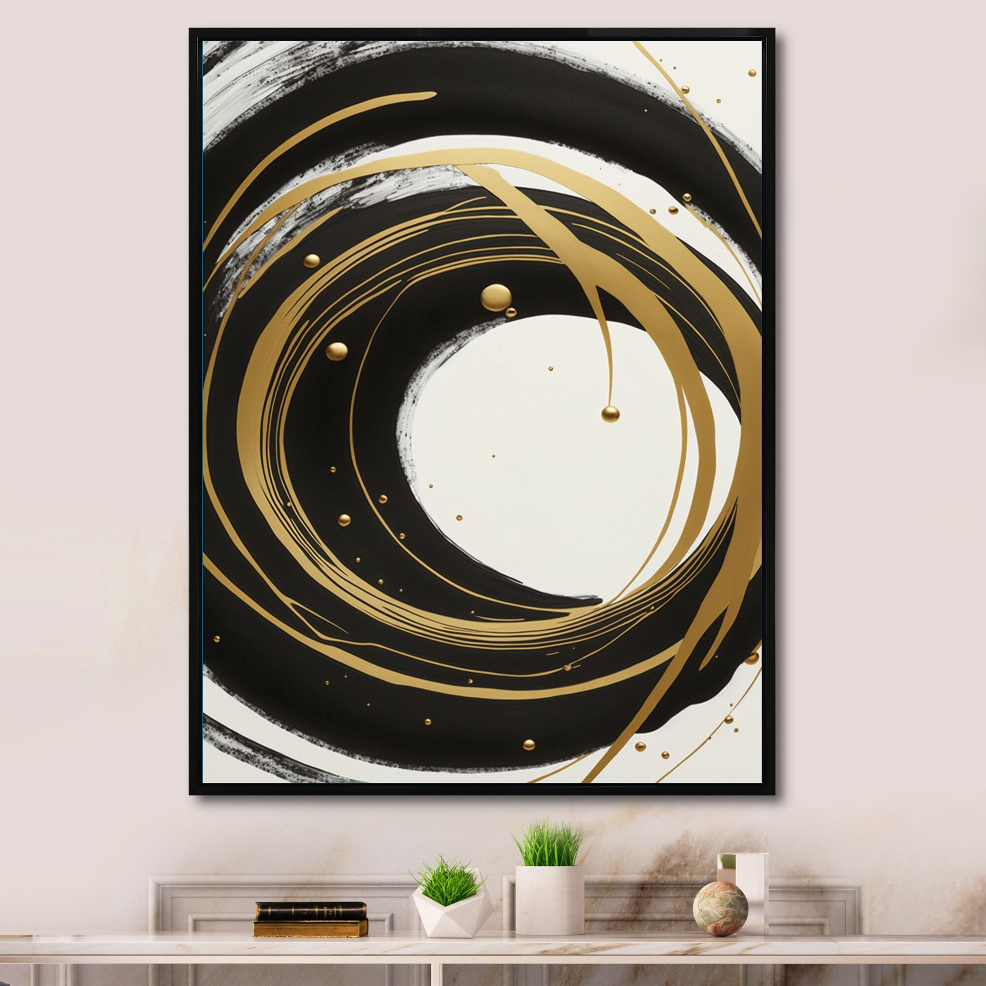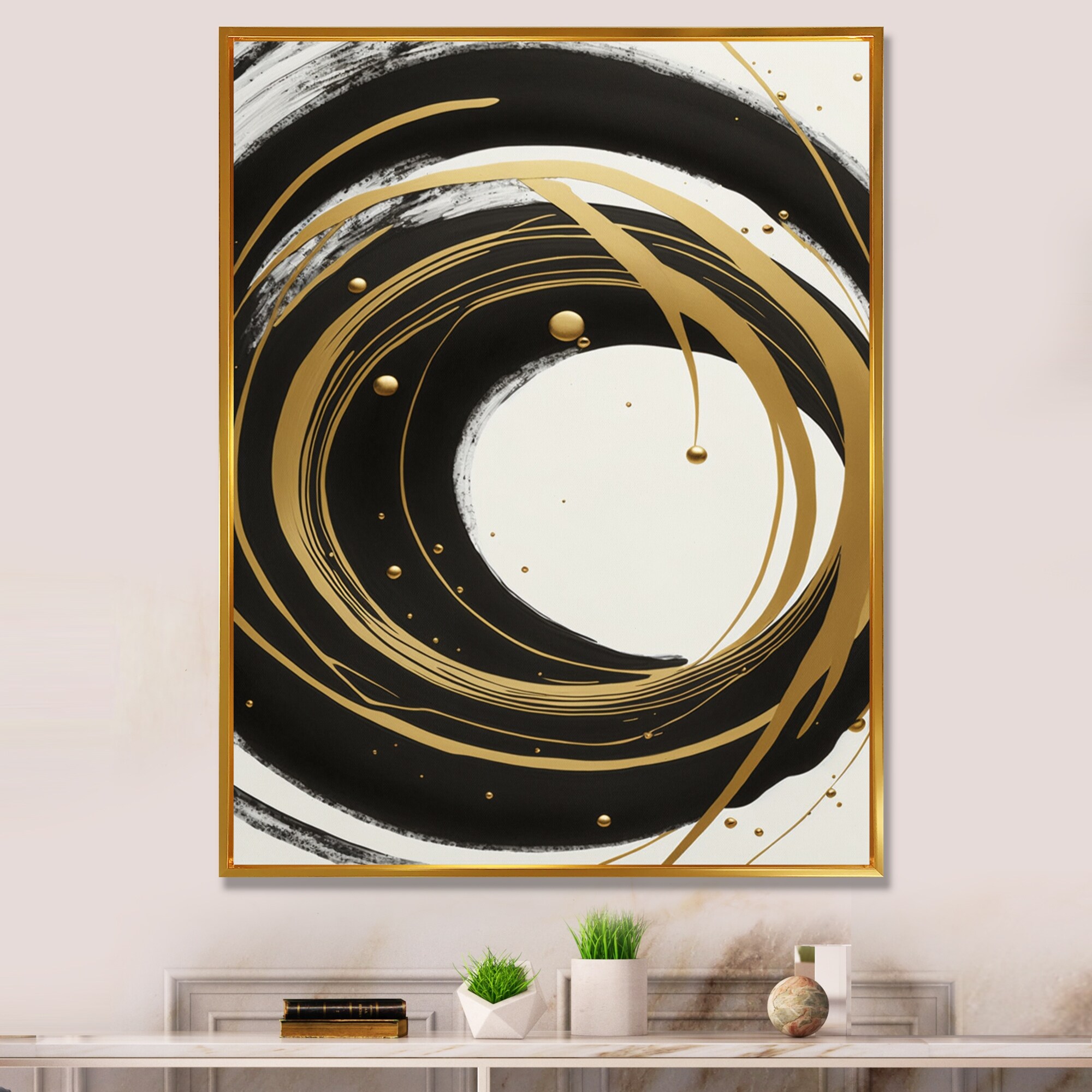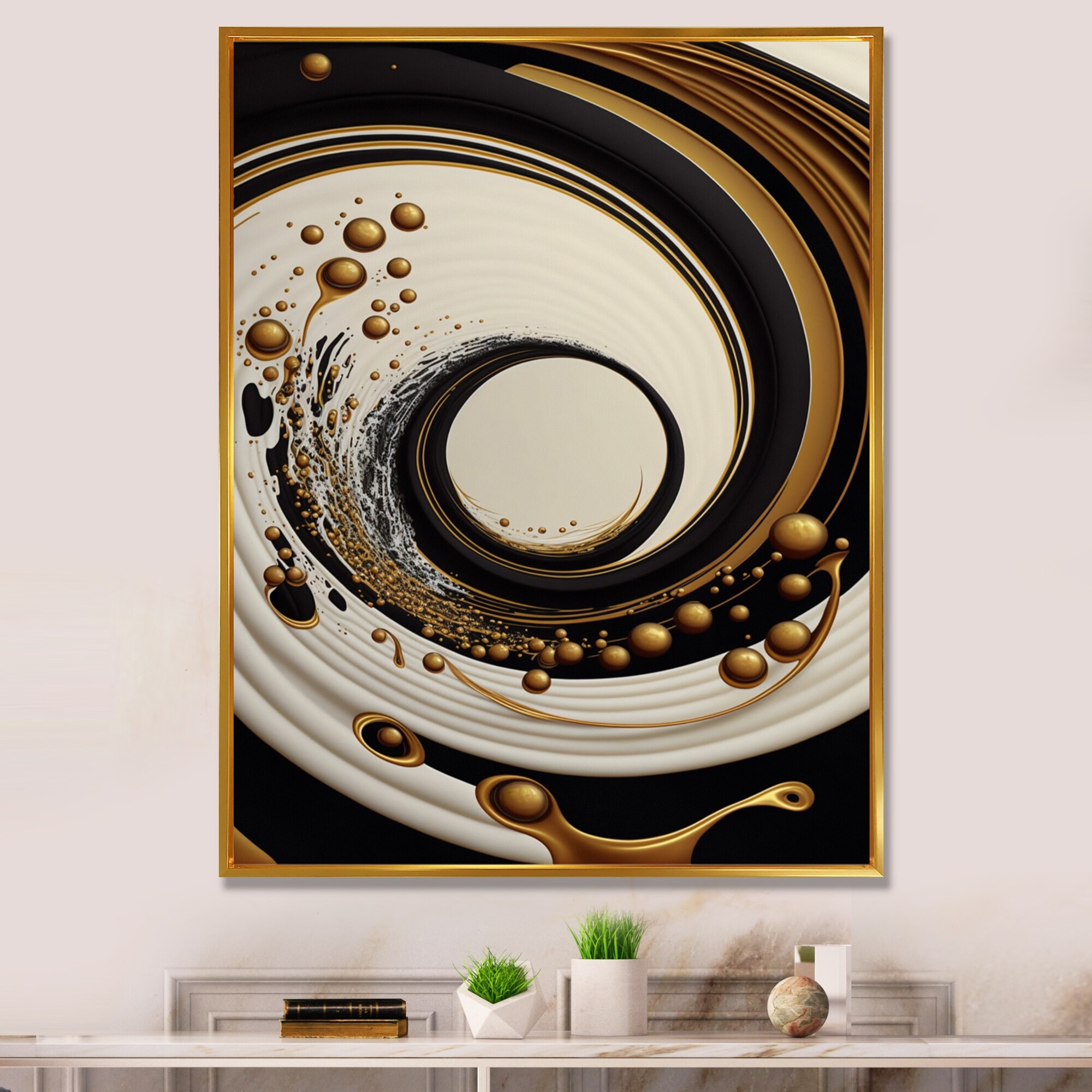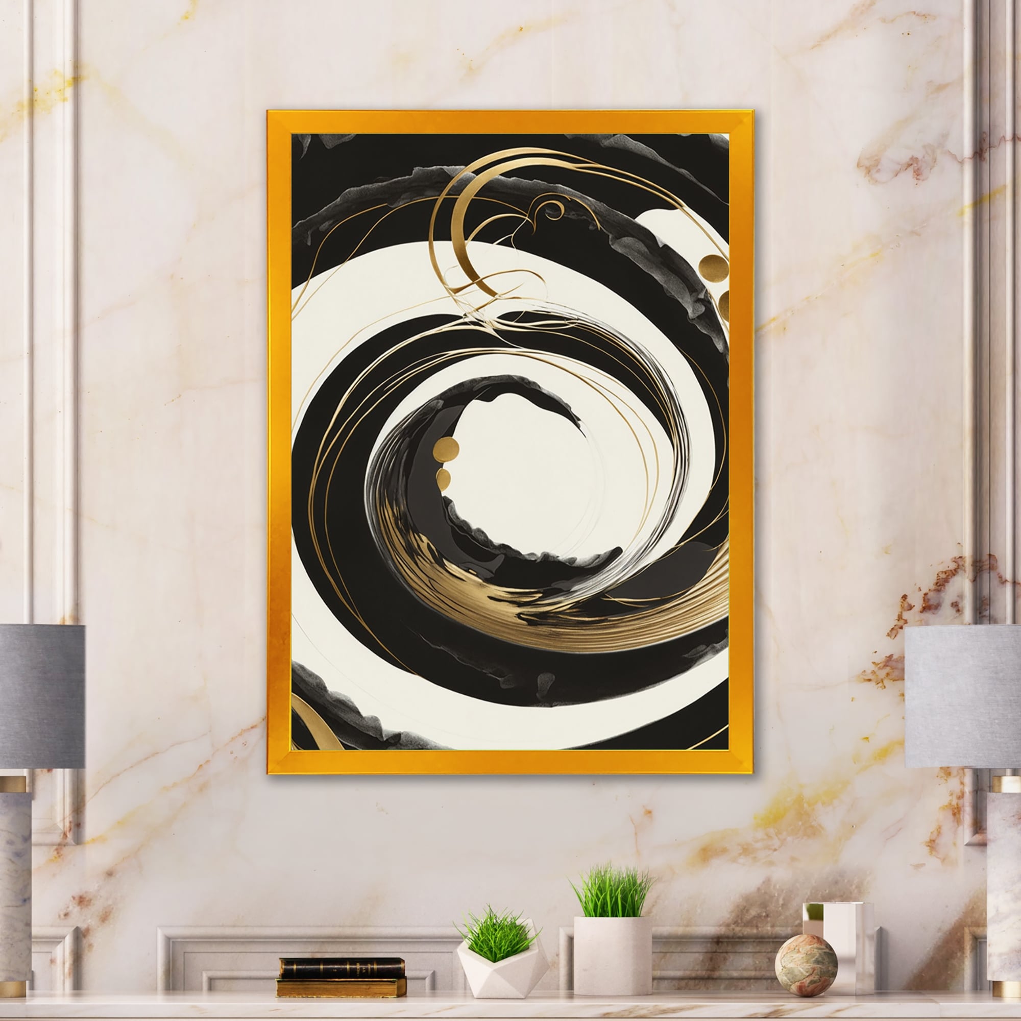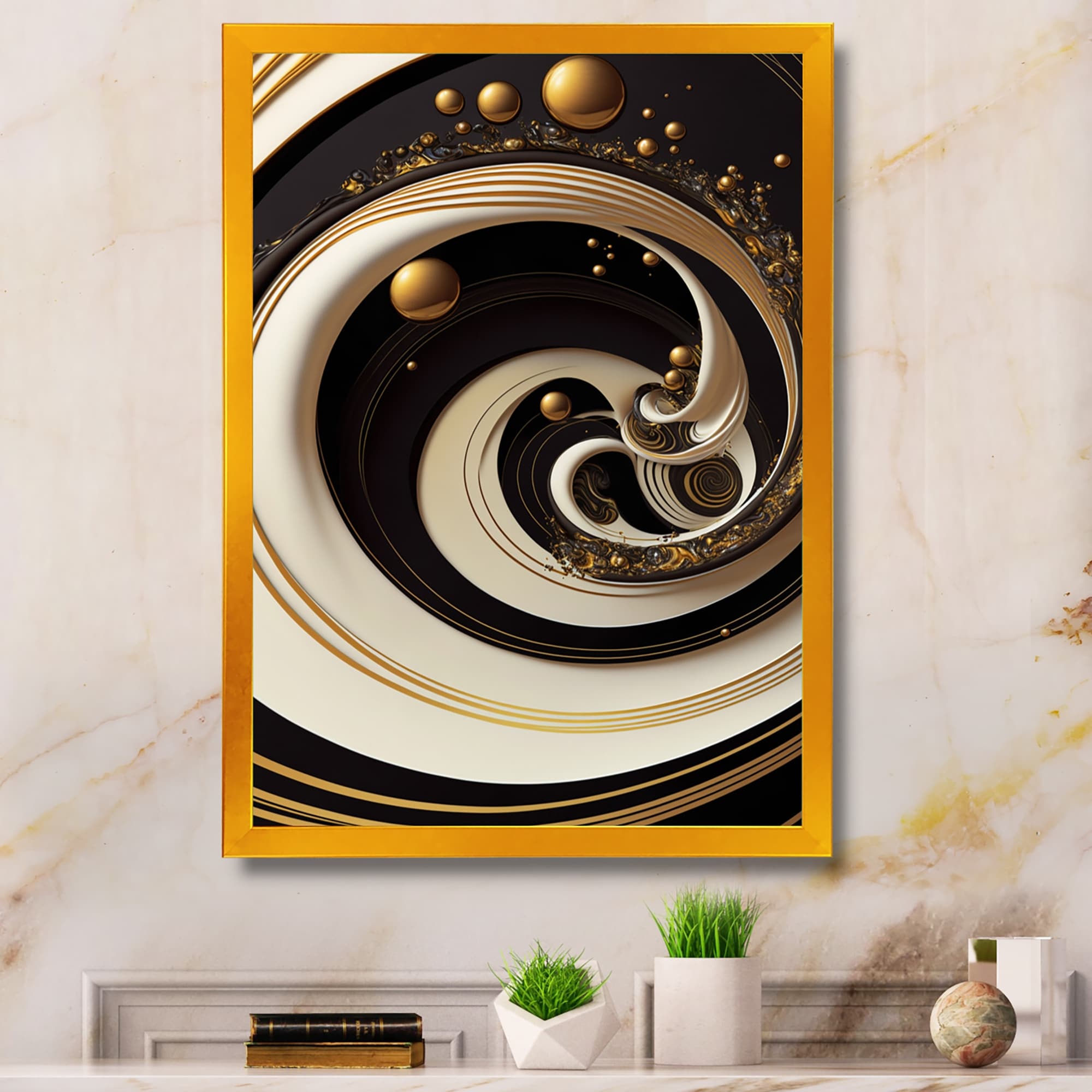 Designart "Black, Silver And Gold Blending Swirls IV" Modern Framed Canvas Art Print