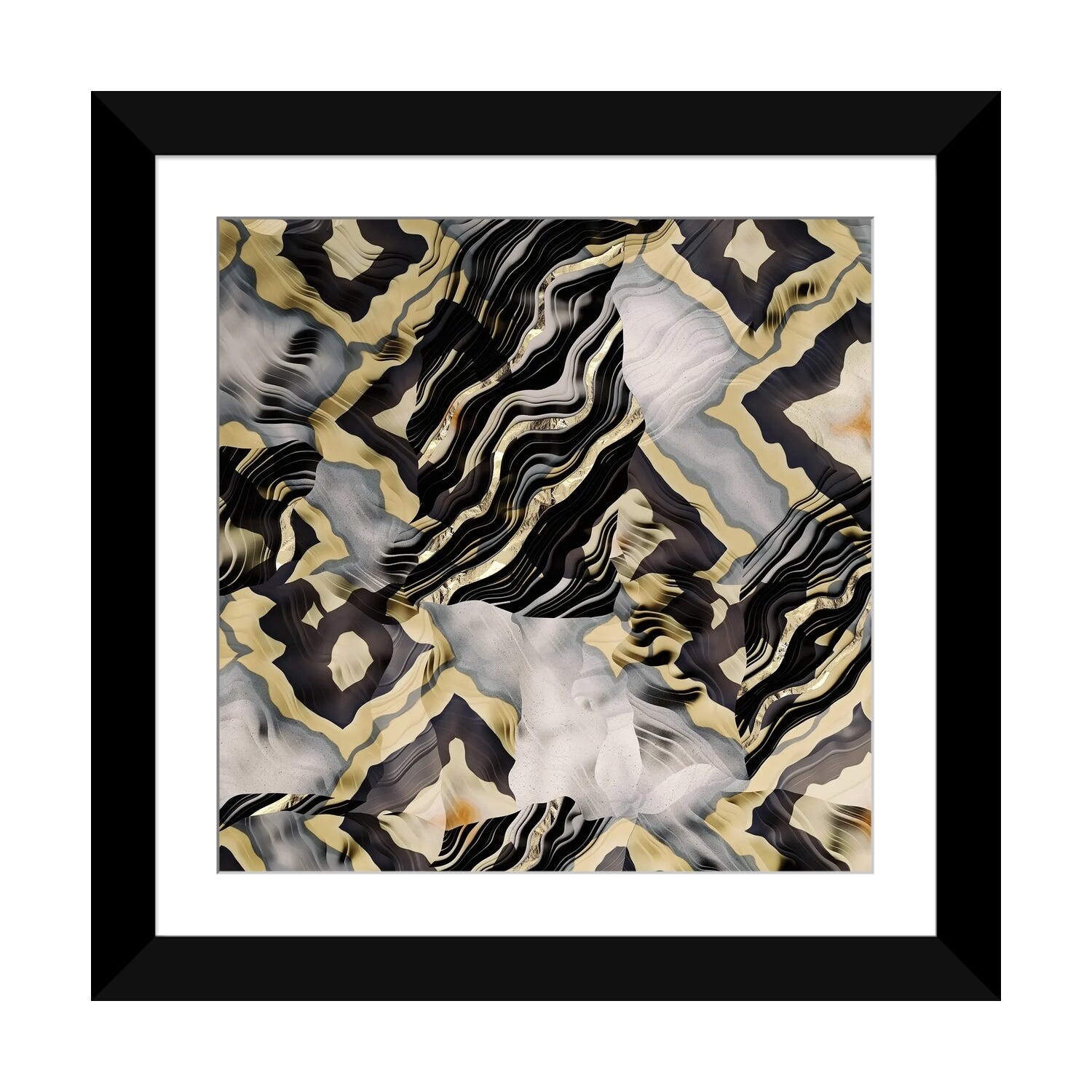 Designart "Black, Silver And Gold Blending Swirls II" Modern Framed Art Print
