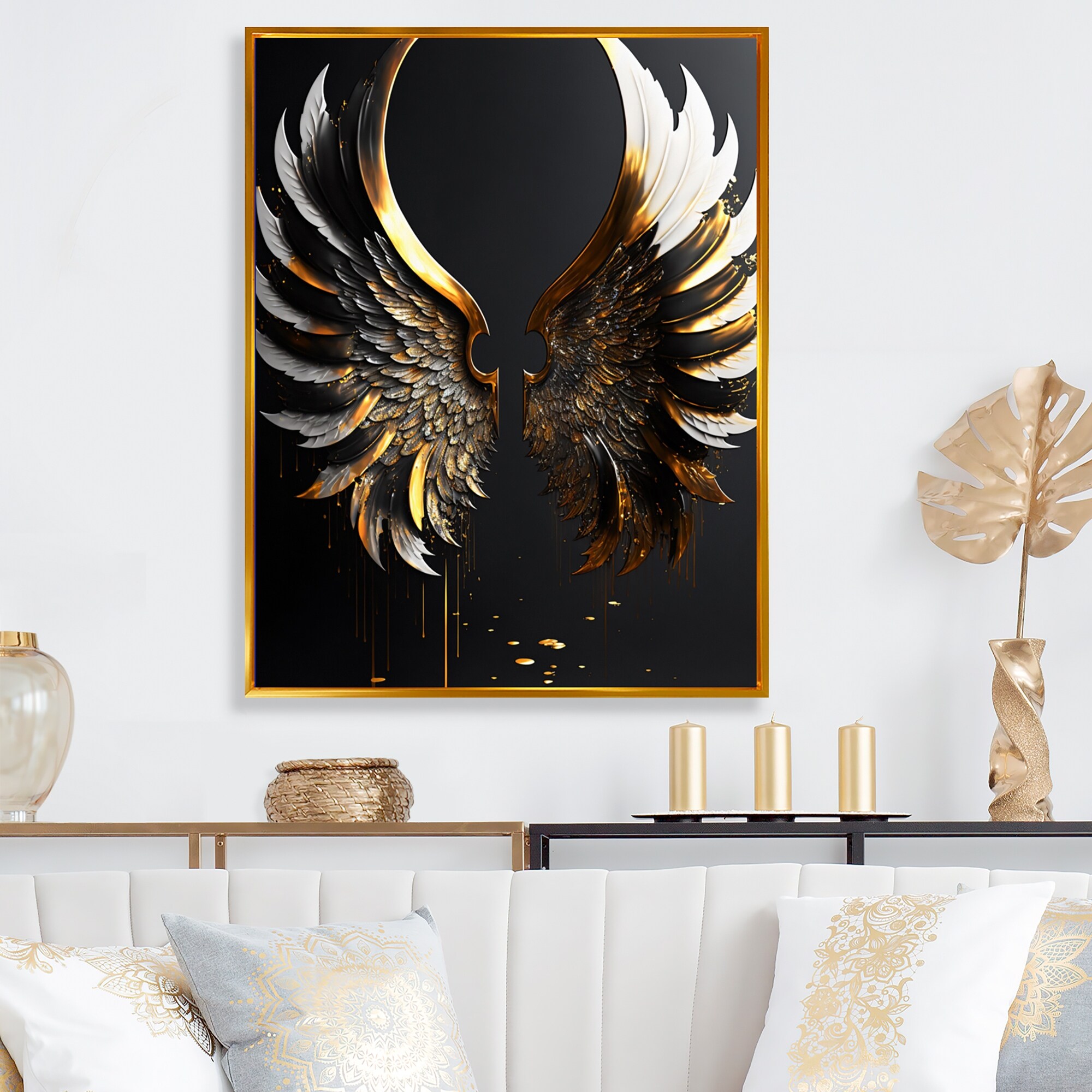 Designart "Black Silver And Gold Angel Wings IV" Contemporary Glam Framed Canvas Art Print