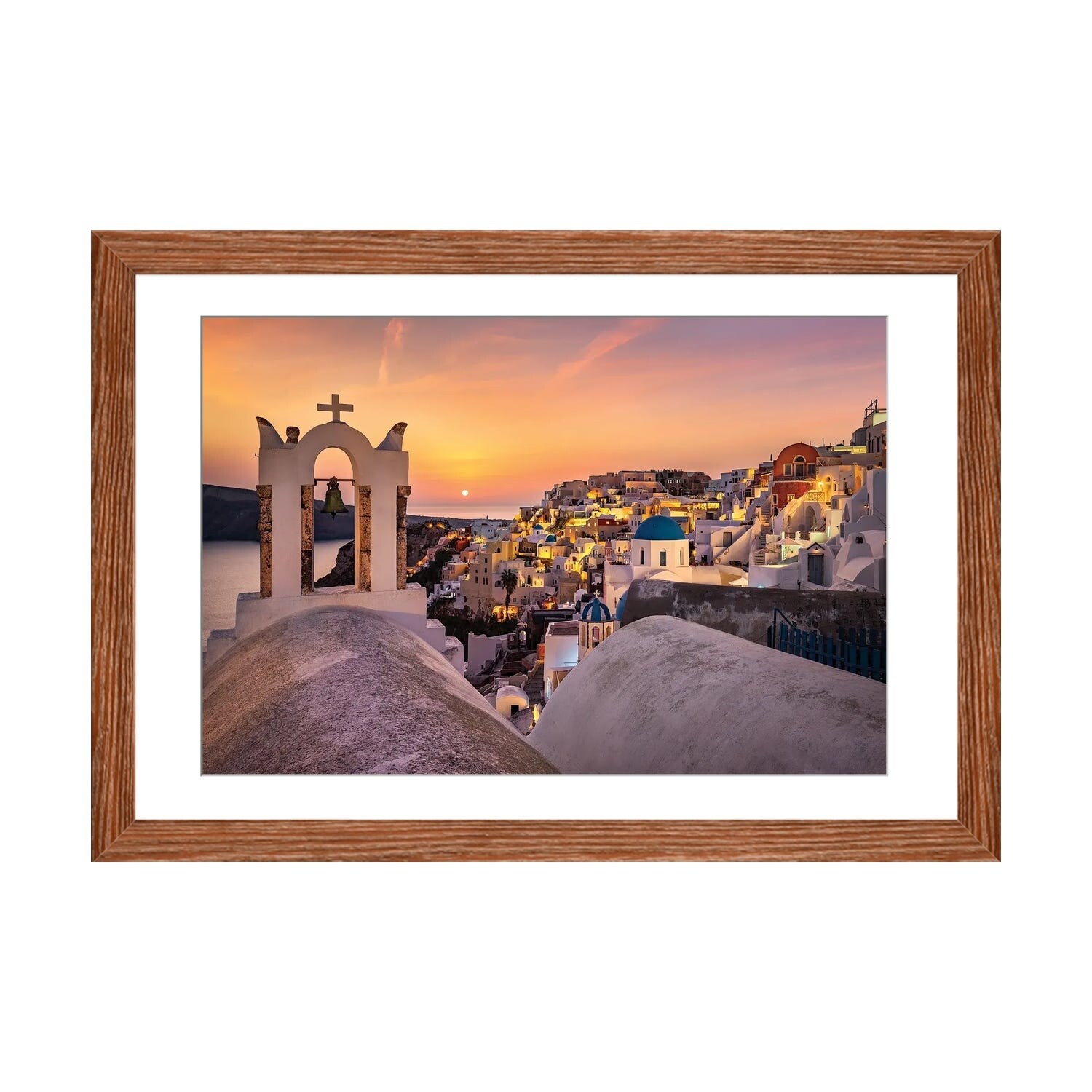 iCanvas "Greece, Oia. Greek Orthodox church and village at sunset. " by Jaynes Gallery