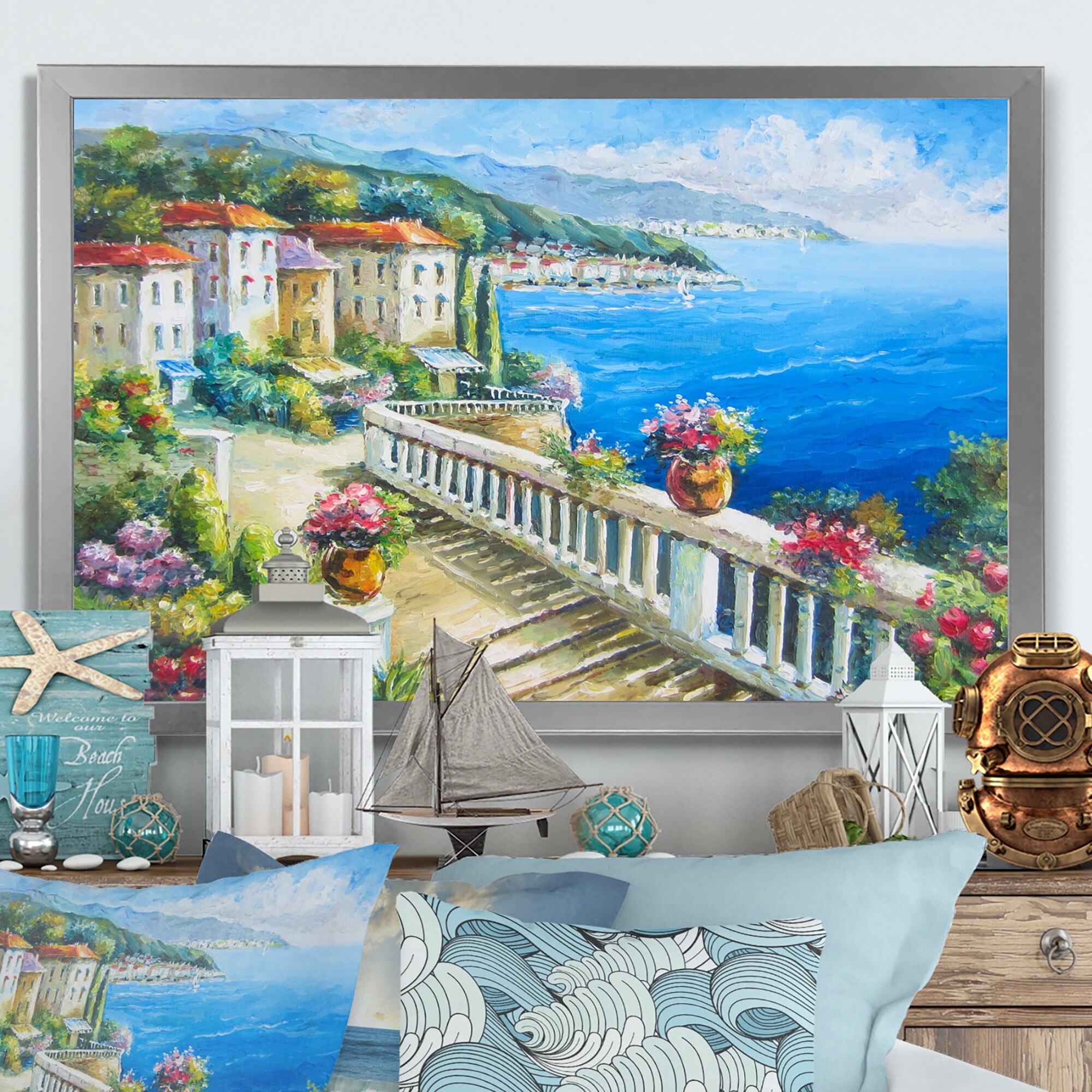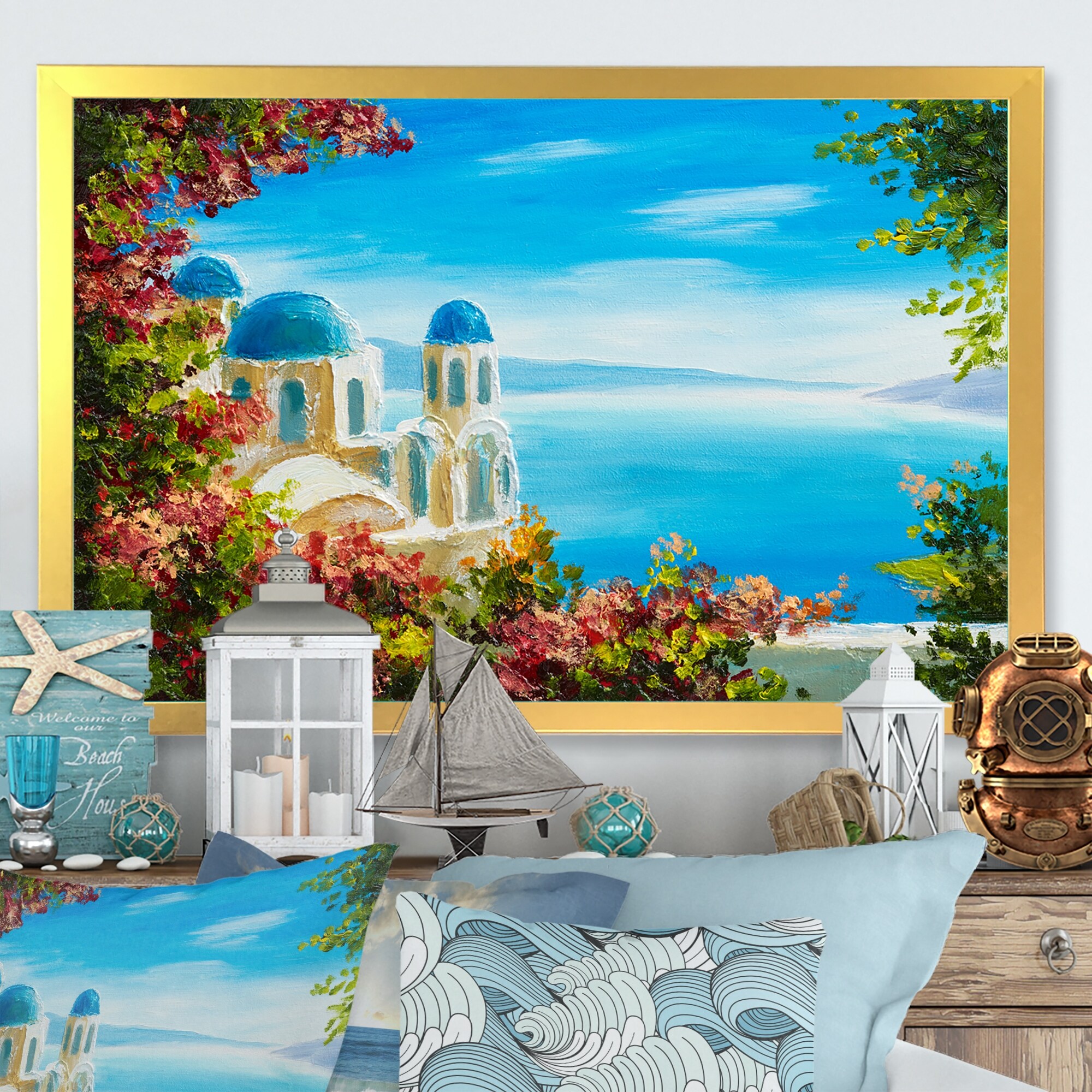 Designart "Beautiful Greece Coastal Landscape" Nautical & Coastal Framed Wall Art