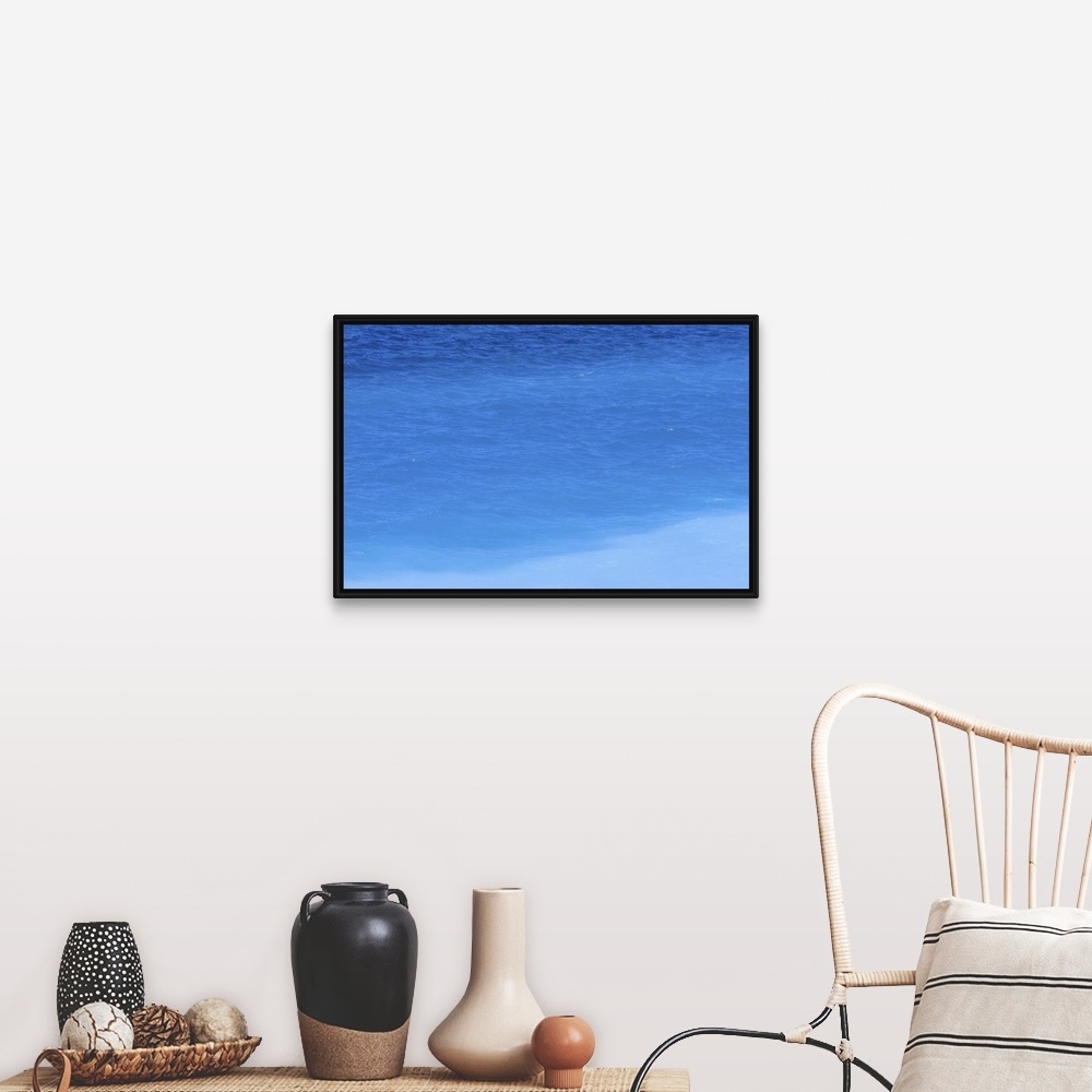 "Shades of blue ocean, Rhodos, Greece" Black Float Frame Canvas Art