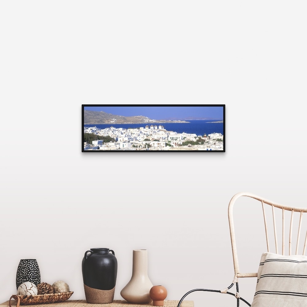"Mykonos Cyclades Greece" Black Float Frame Canvas Art