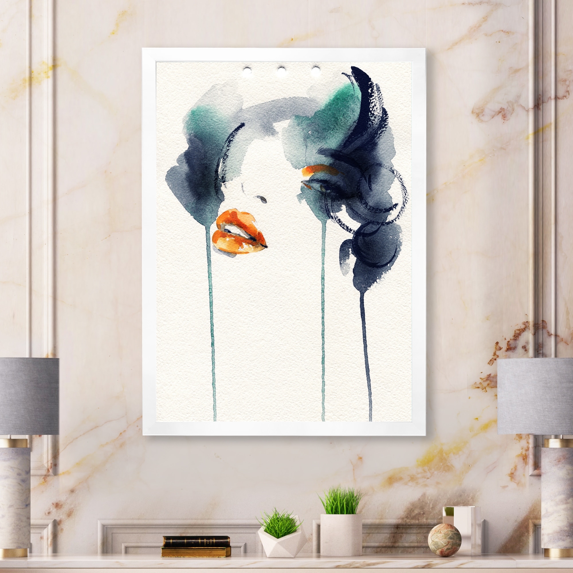 Designart "Abstract Portrait of a Woman With Blue Hair Red Lips" Glam Framed artwork
