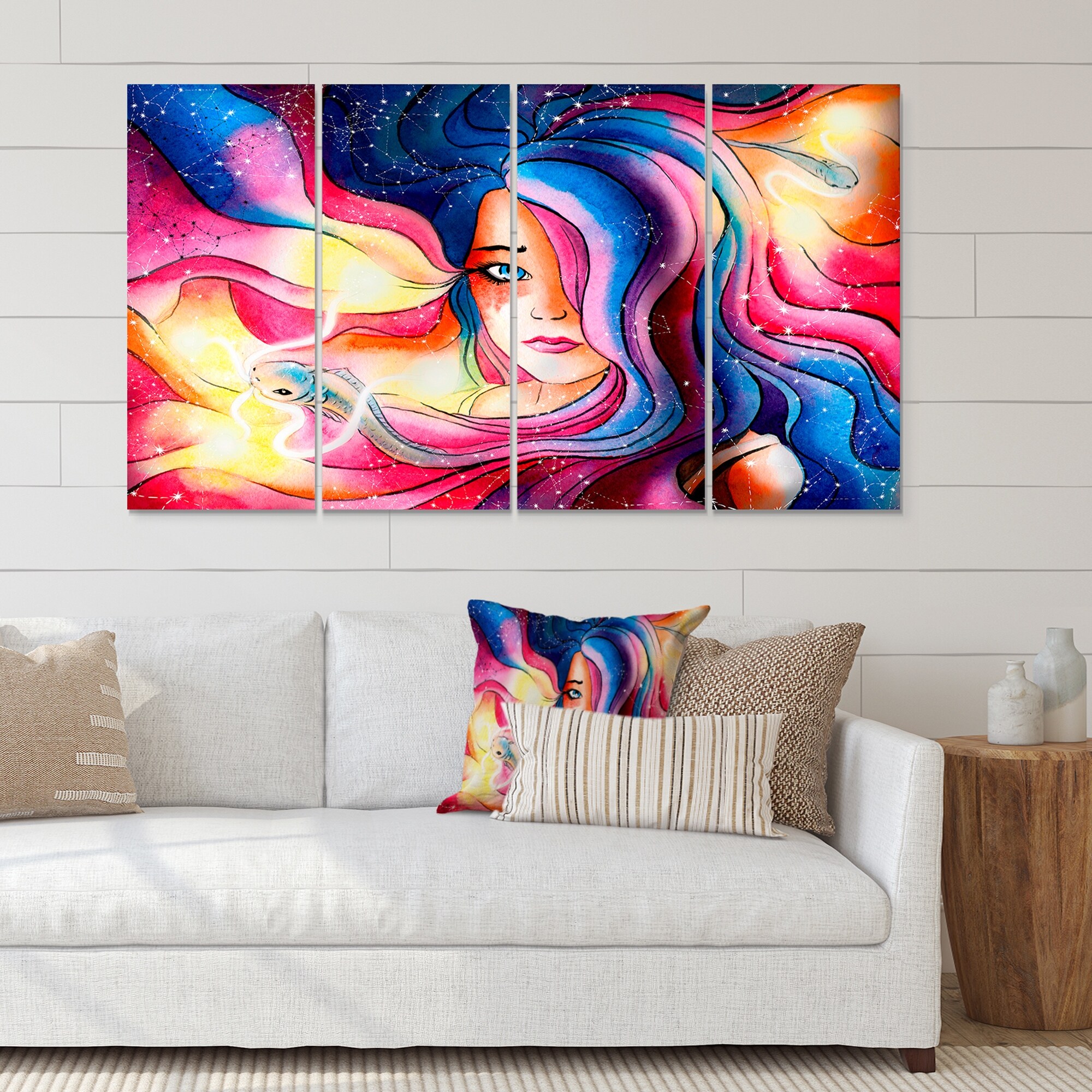 Designart "The Girl With the Glowing Hair" Modern Canvas Wall Art Print