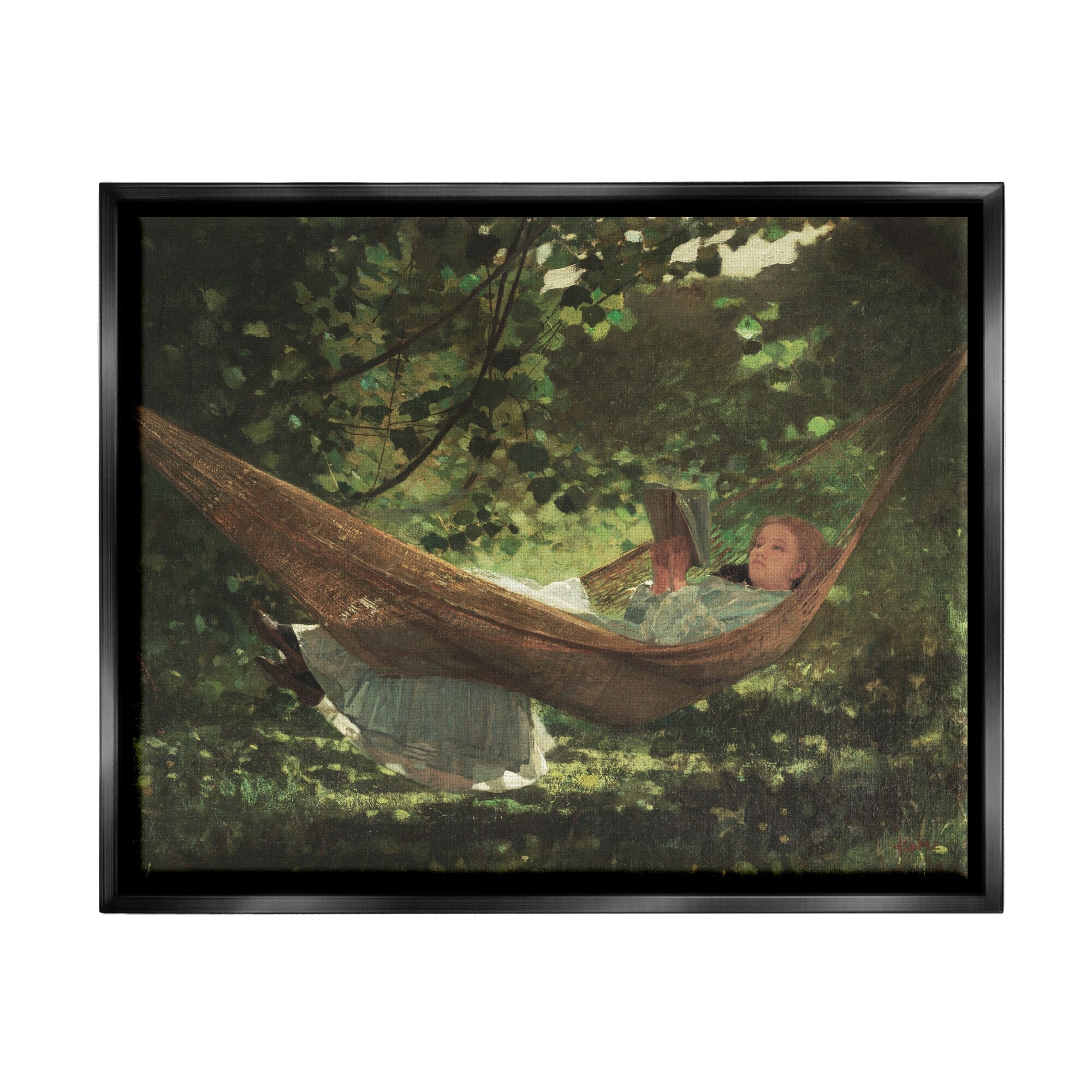 Stupell Girl Reading Book Hammock Classic Vintage Painting Floater Frame, Design by Lettered and Lined