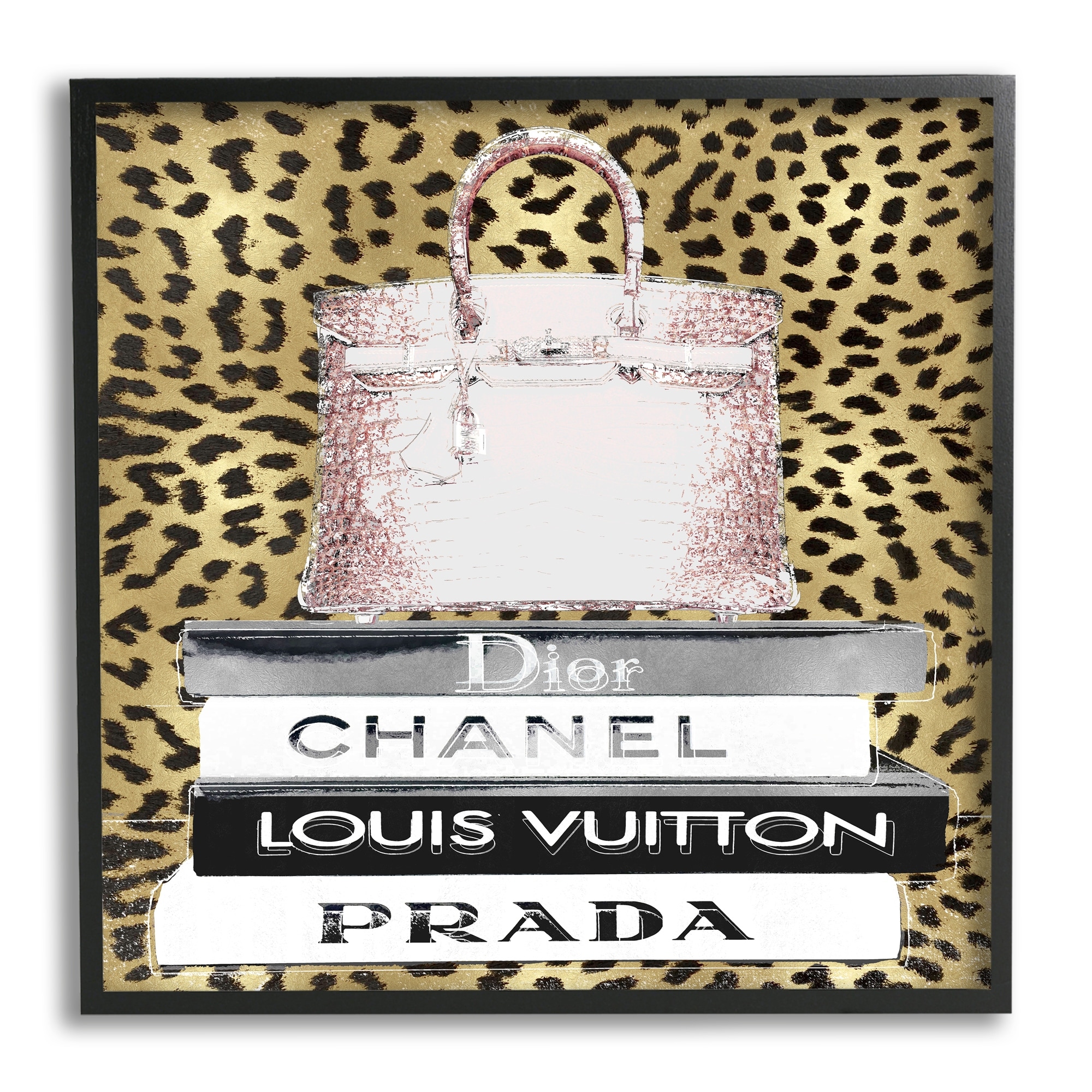 Stupell Industries Glam Handbag Fashion Book Stack Cheetah Pattern Framed Wall Art - White