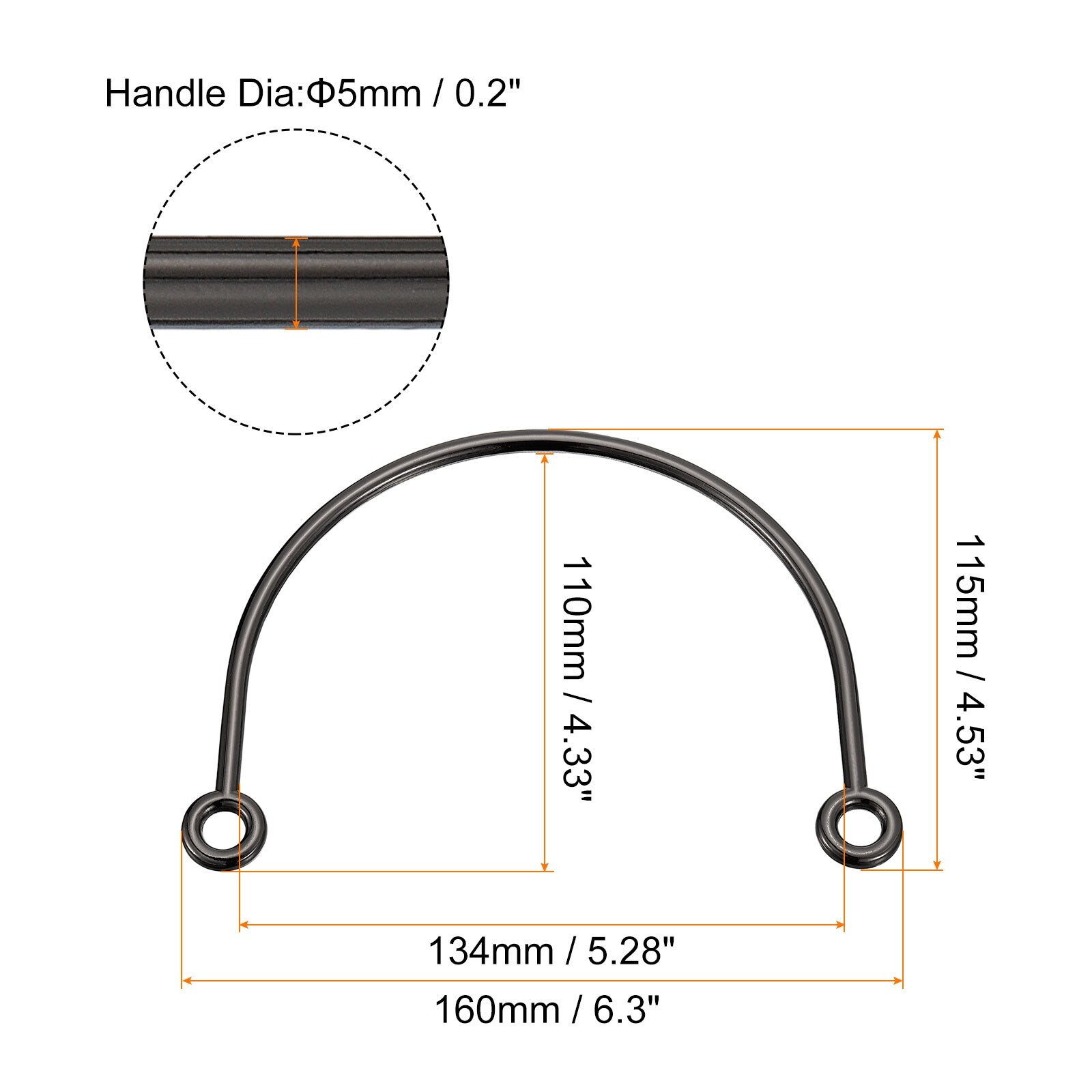 4.96" Semicircle Handbag Handle Frame Replacement for Purse Making, 2Pcs Gold