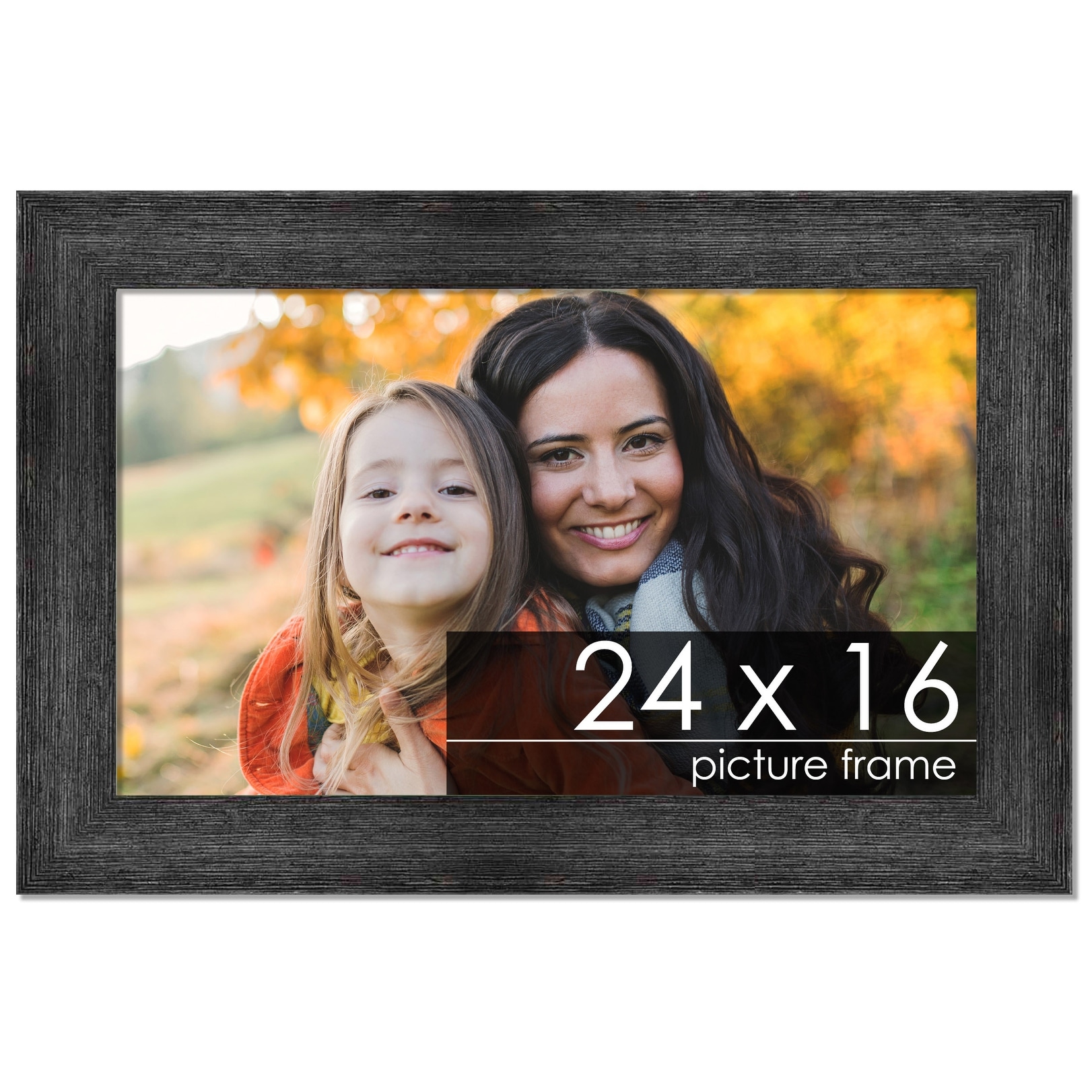 24x16 Distressed/Aged Black Wood Picture Frame - UV Acrylic, Foam Board Backing, & Hanging Hardware Included!