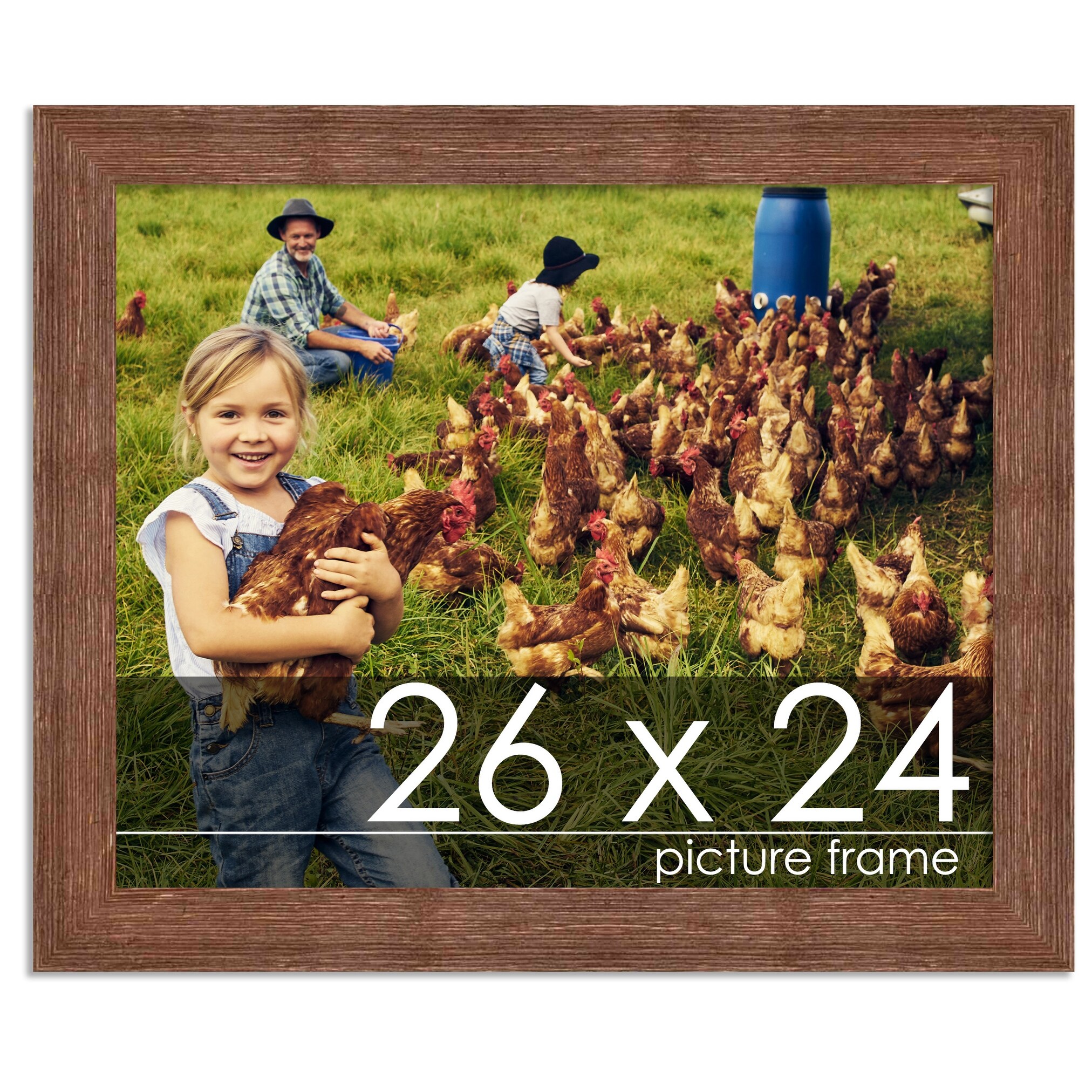26x24 Frame Brown Barnwood Picture Frame with UV Acrylic Glass, Foam Board Backing & Hanging Hardware Included