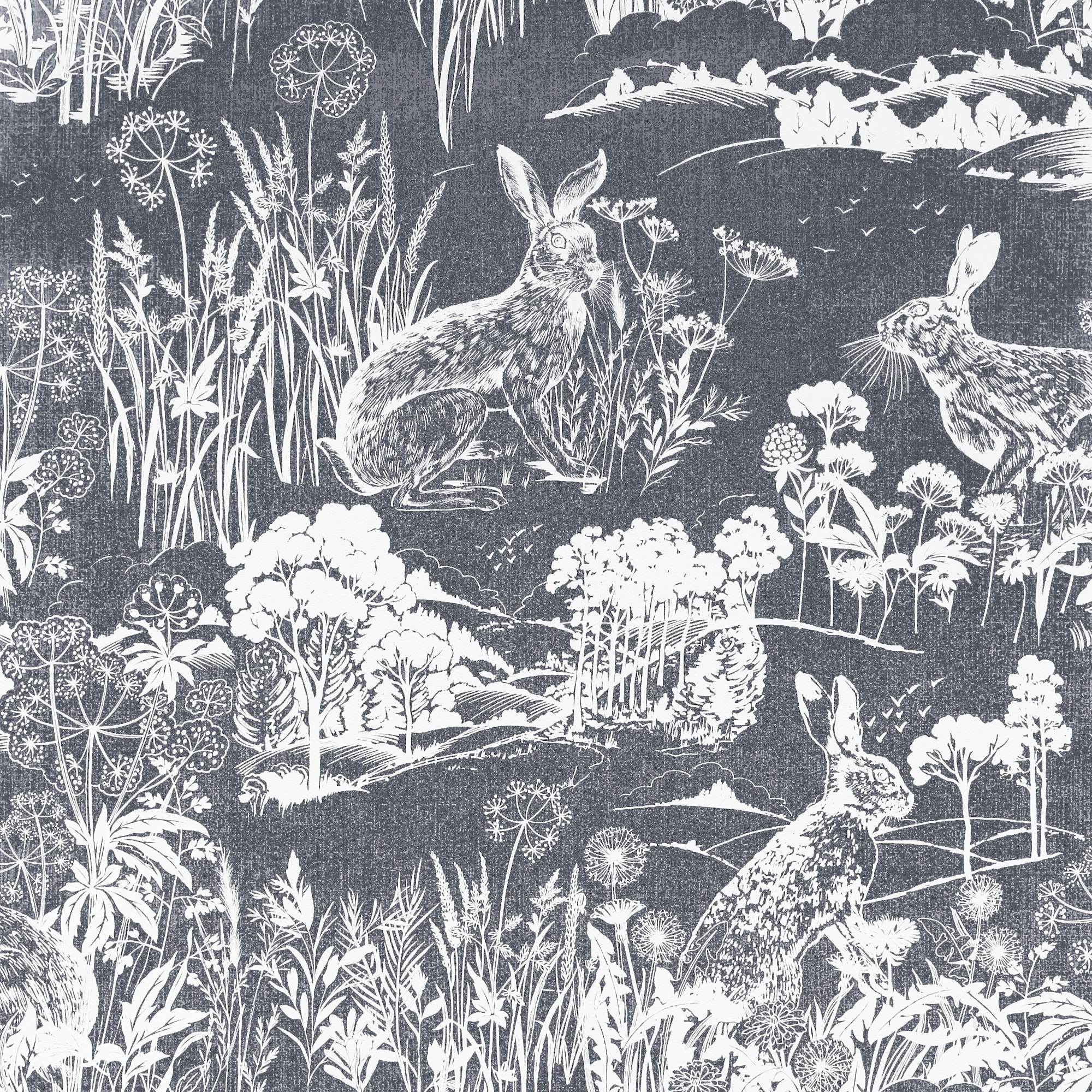 Meadow Hare Floral Navy Wallpaper - 20.8 in. W x 33ft L - Double Roll