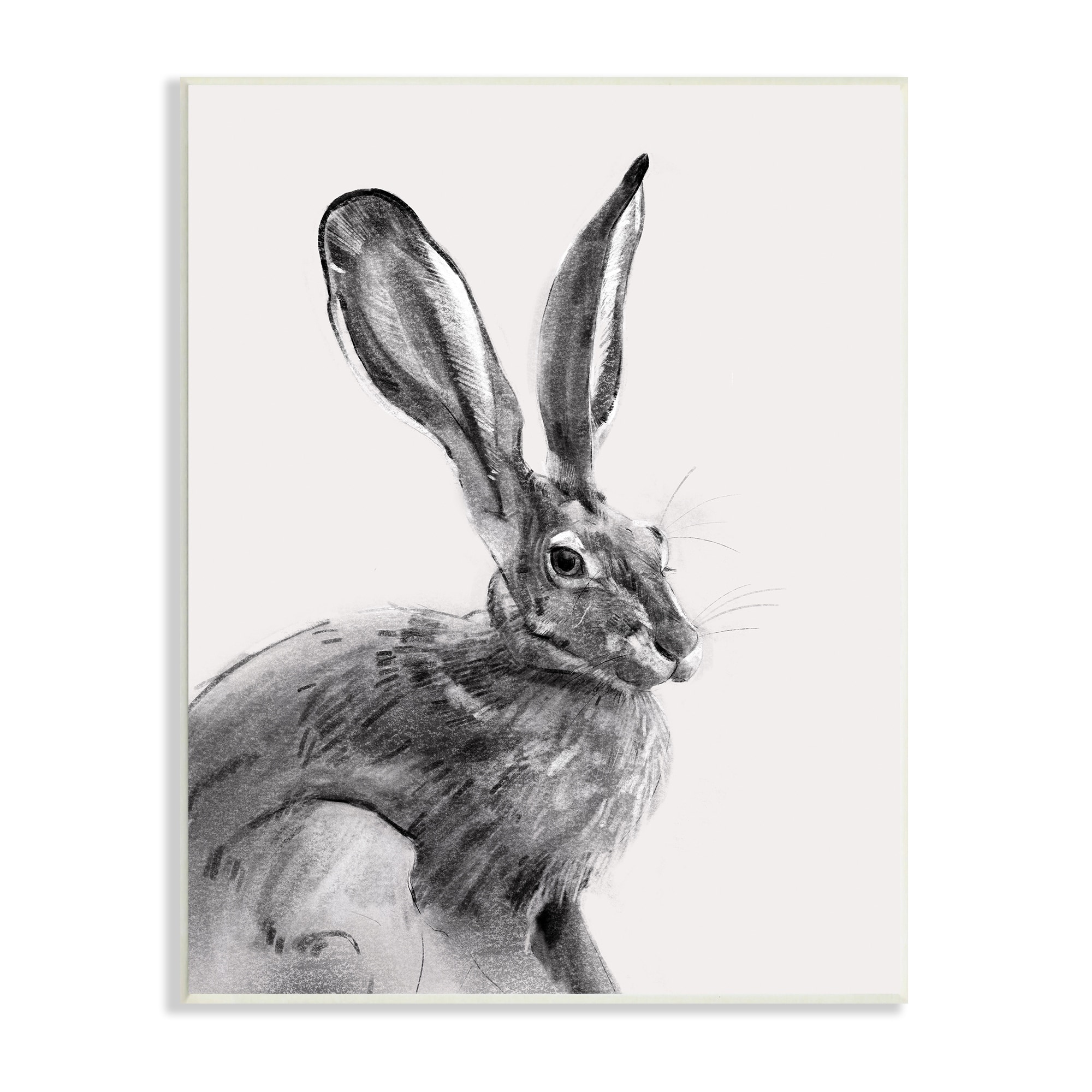 Stupell Resting Wild Hare Portrait Bold Face Rabbit Illustration Wood Wall Art, 10 x 15 - Grey