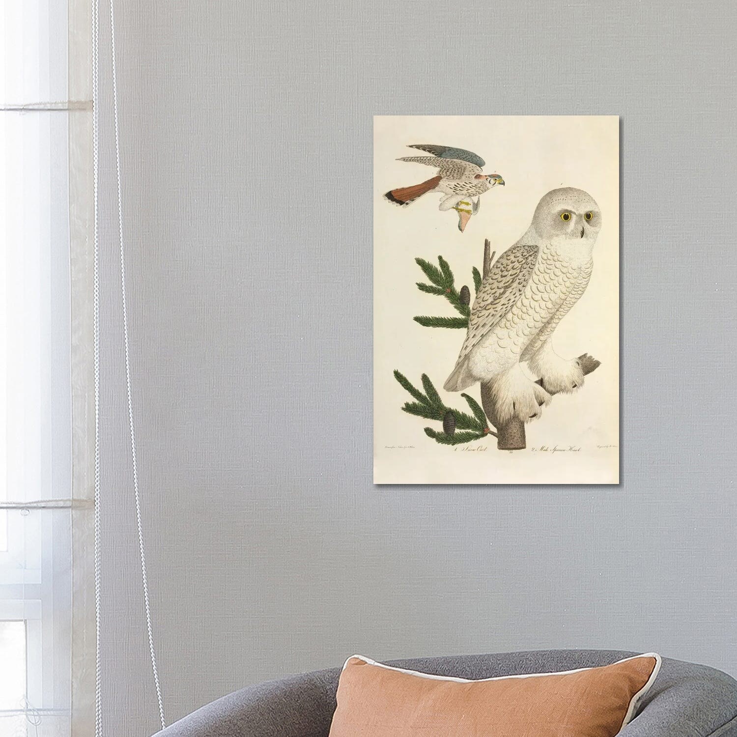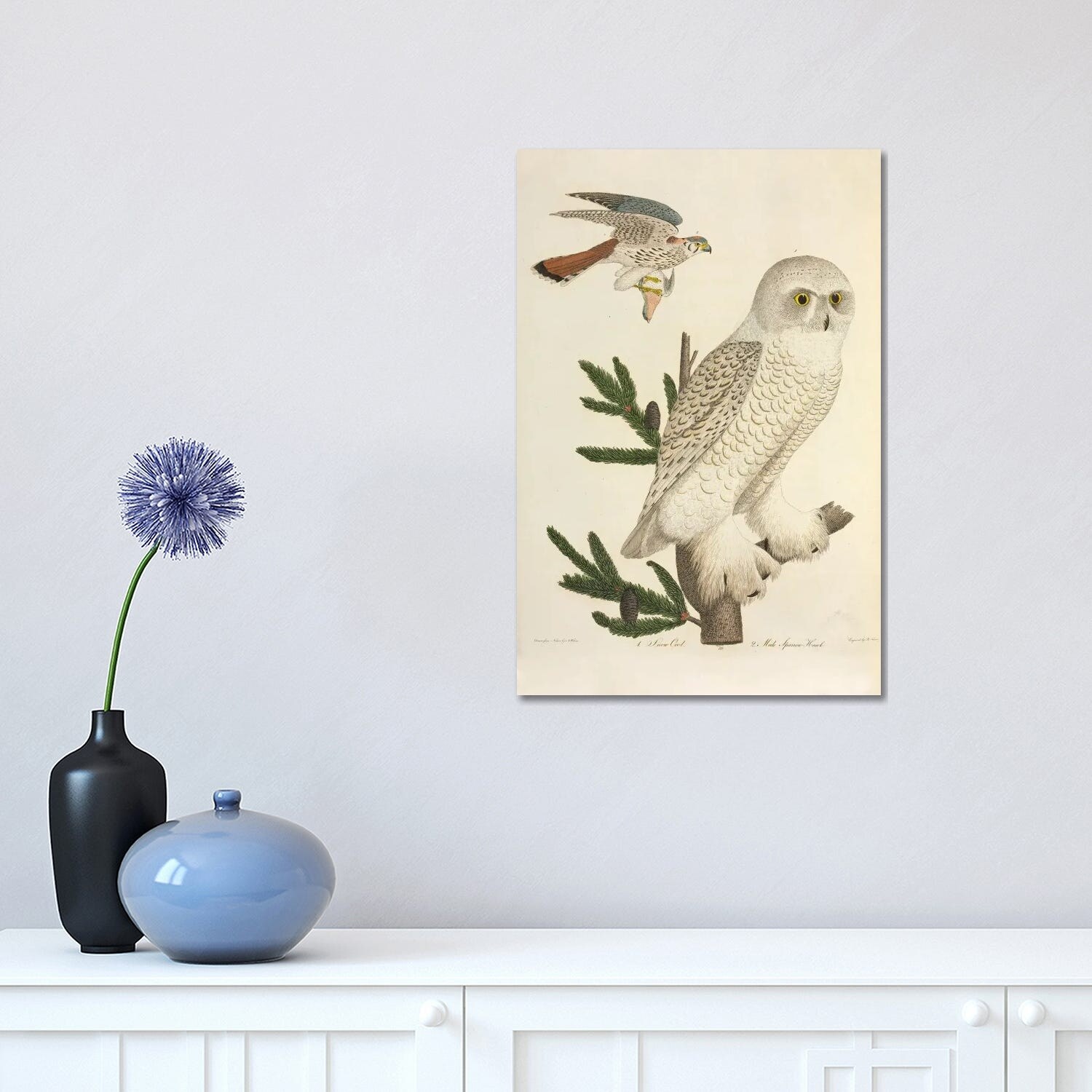 iCanvas "Snowy Owl And Sparrow Hawk" by Natural History Museum (UK) Canvas Print