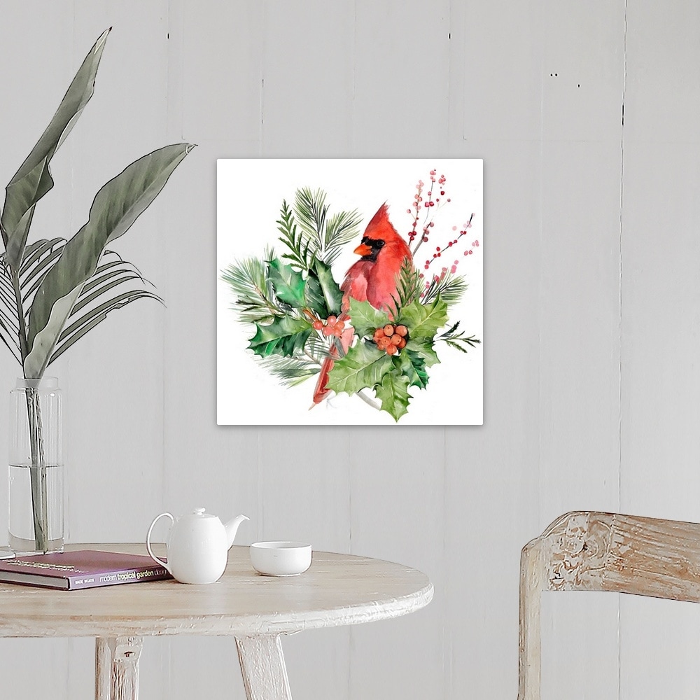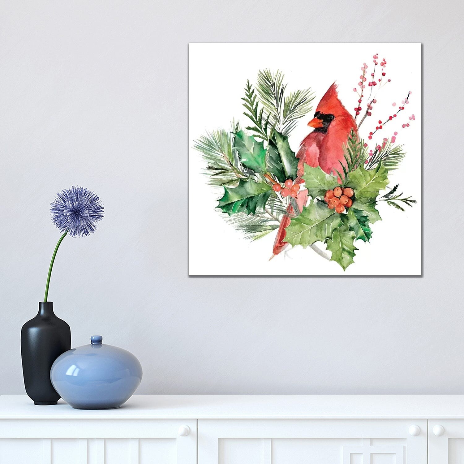 "Cardinal Holly Christmas I" Canvas Wall Art