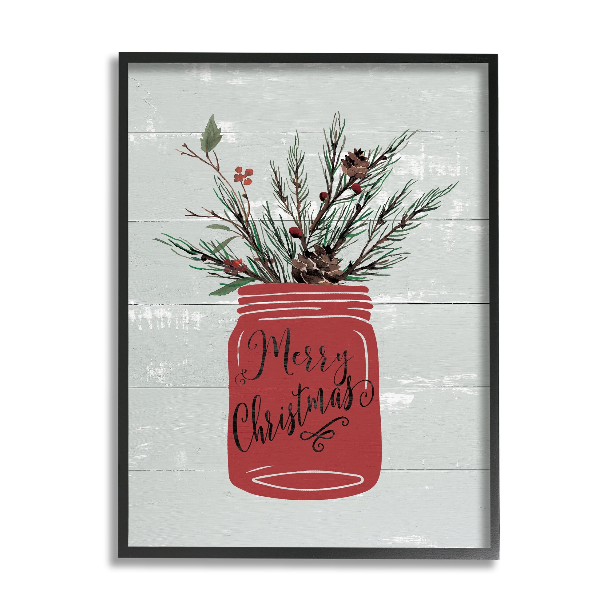 Stupell Red Merry Christmas Country Jar Winter Holly Pine Framed Wall Art - Blue