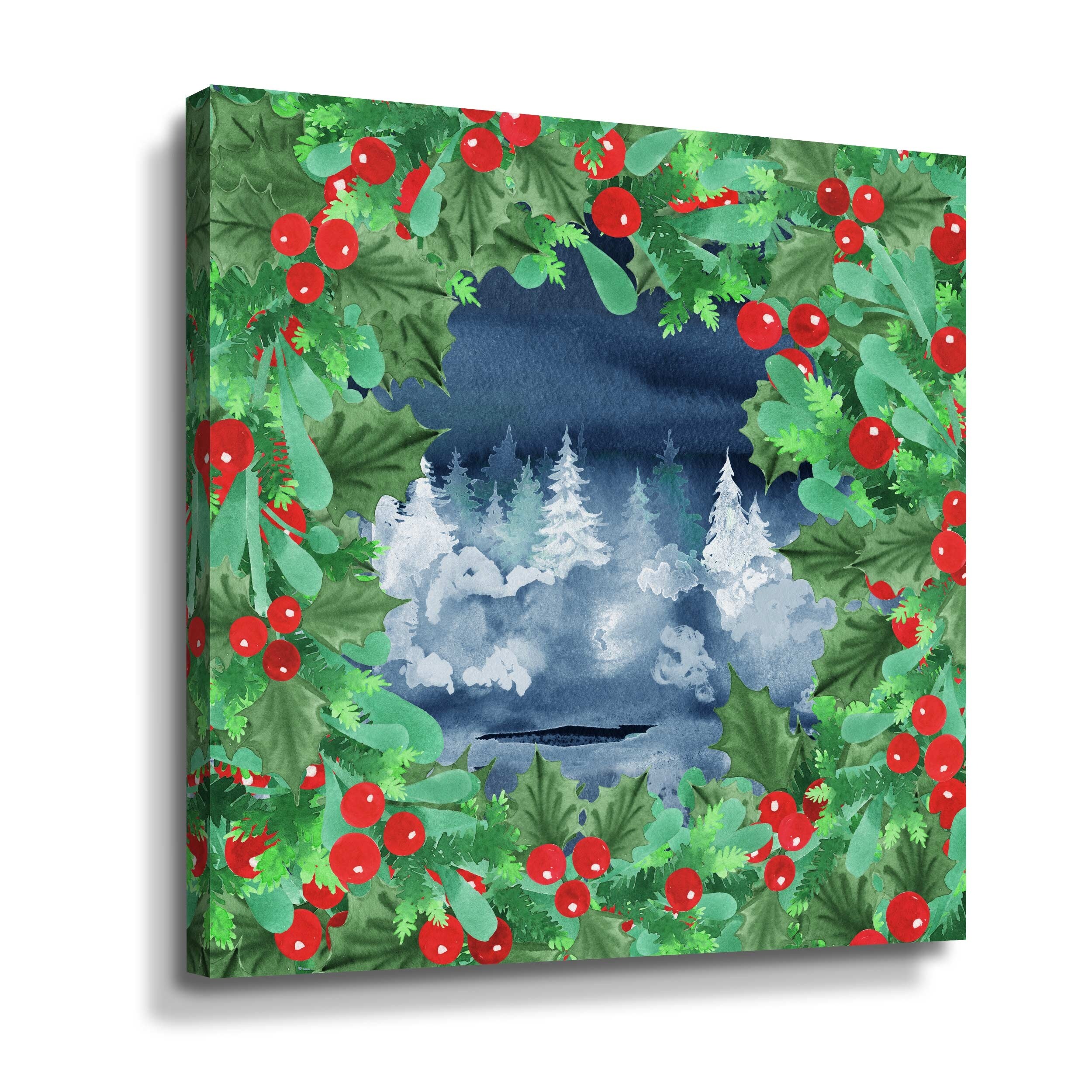 Holly Night With Winter Landscape by Irina Sztukowski Gallery Wrapped Canvas