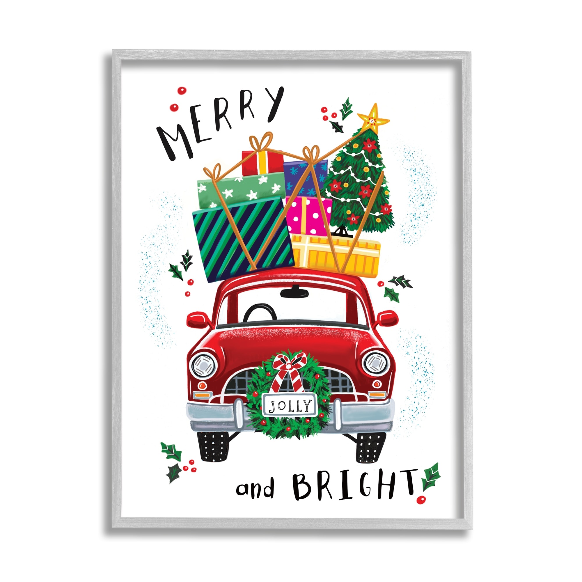 Stupell Industries Merry and Bright Sentiment Red Holly Farm Truck Framed Wall Art - Multi-Color