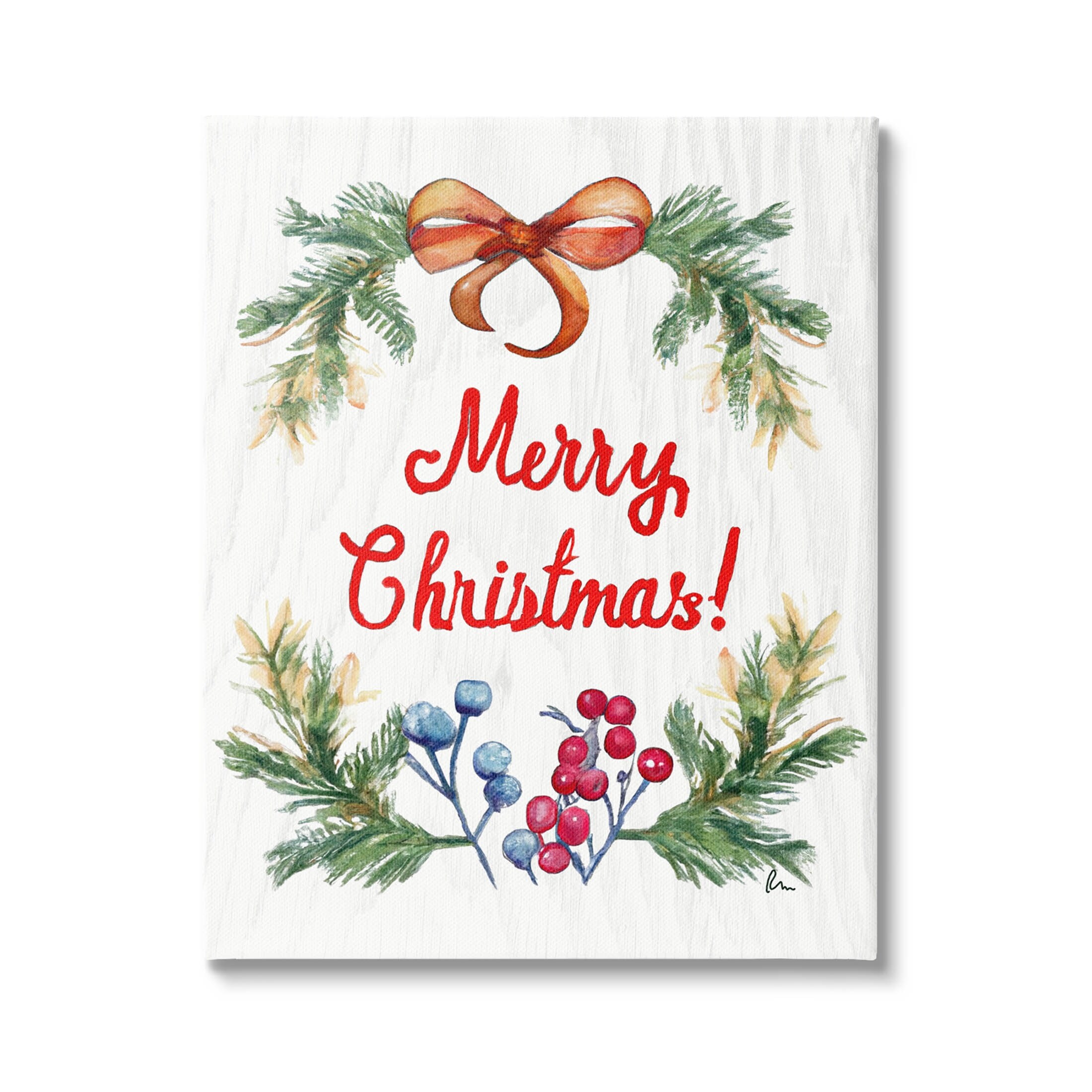 Stupell Industries Merry Christmas Holiday Holly Berry Canvas Wall Art by Ramona Murdock