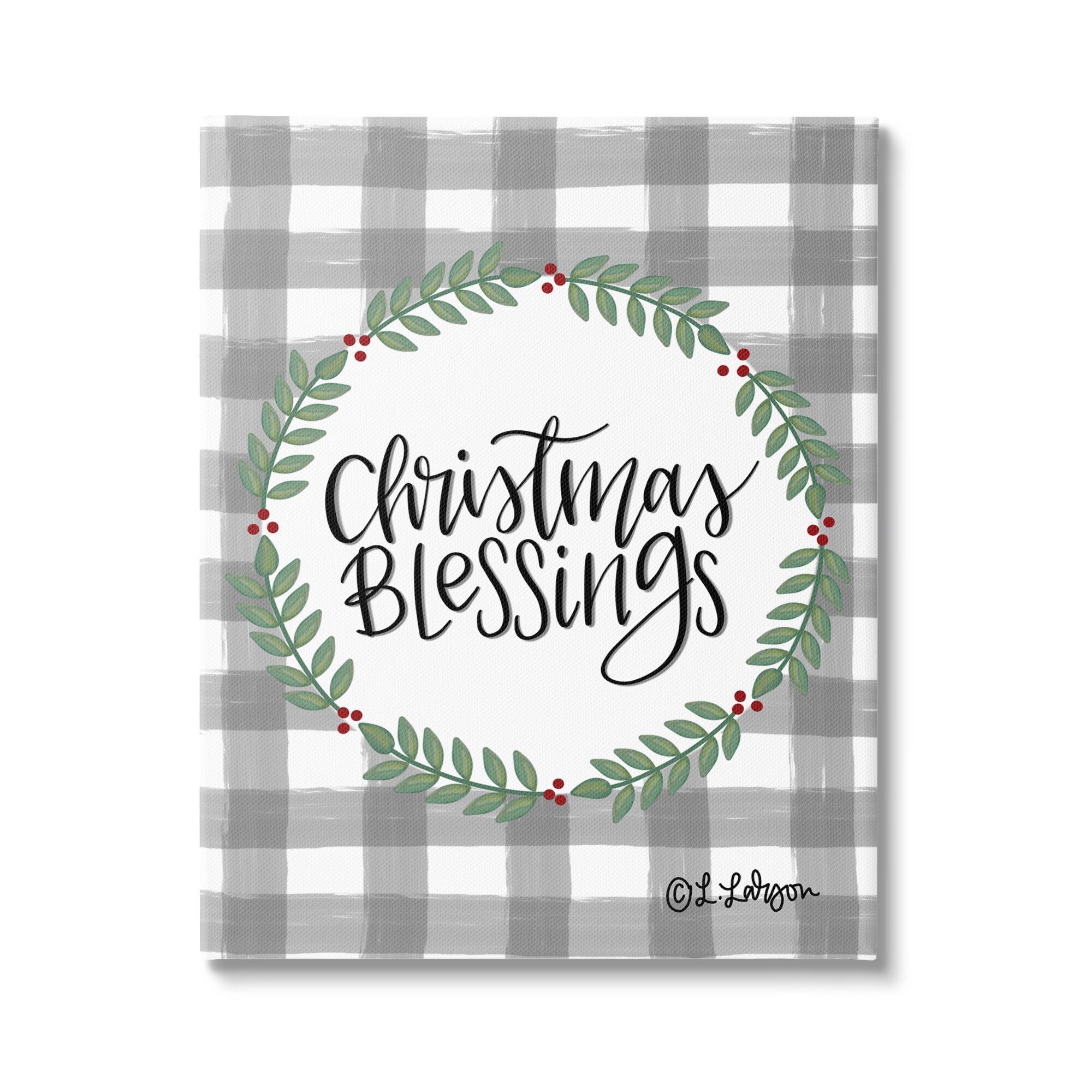 Stupell Industries Christmas Blessings Calligraphy Tartan Holly Sprigs Border Canvas Wall Art - Green