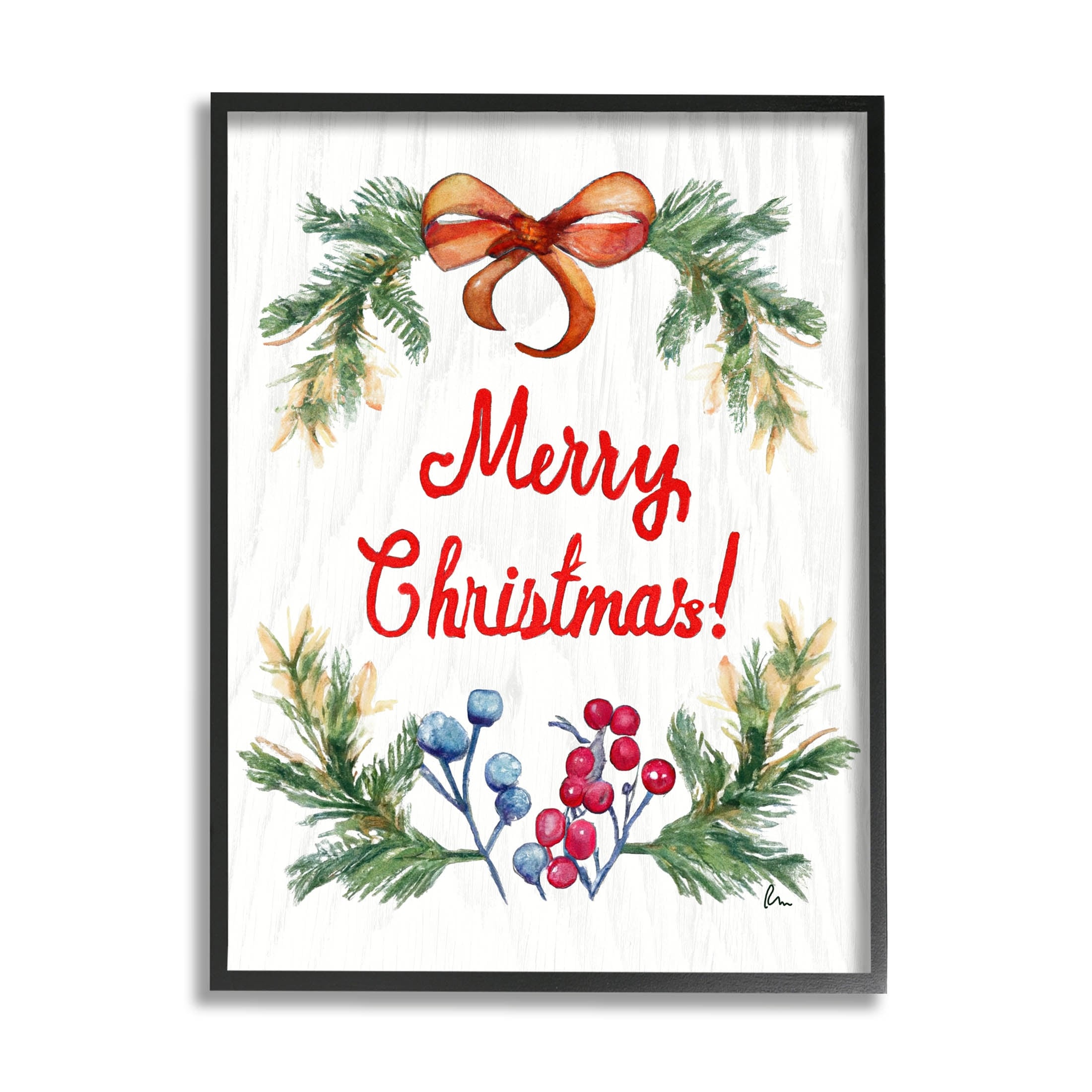 Stupell Merry Christmas Holiday Holly Berry Framed Giclee Art by Ramona Murdock