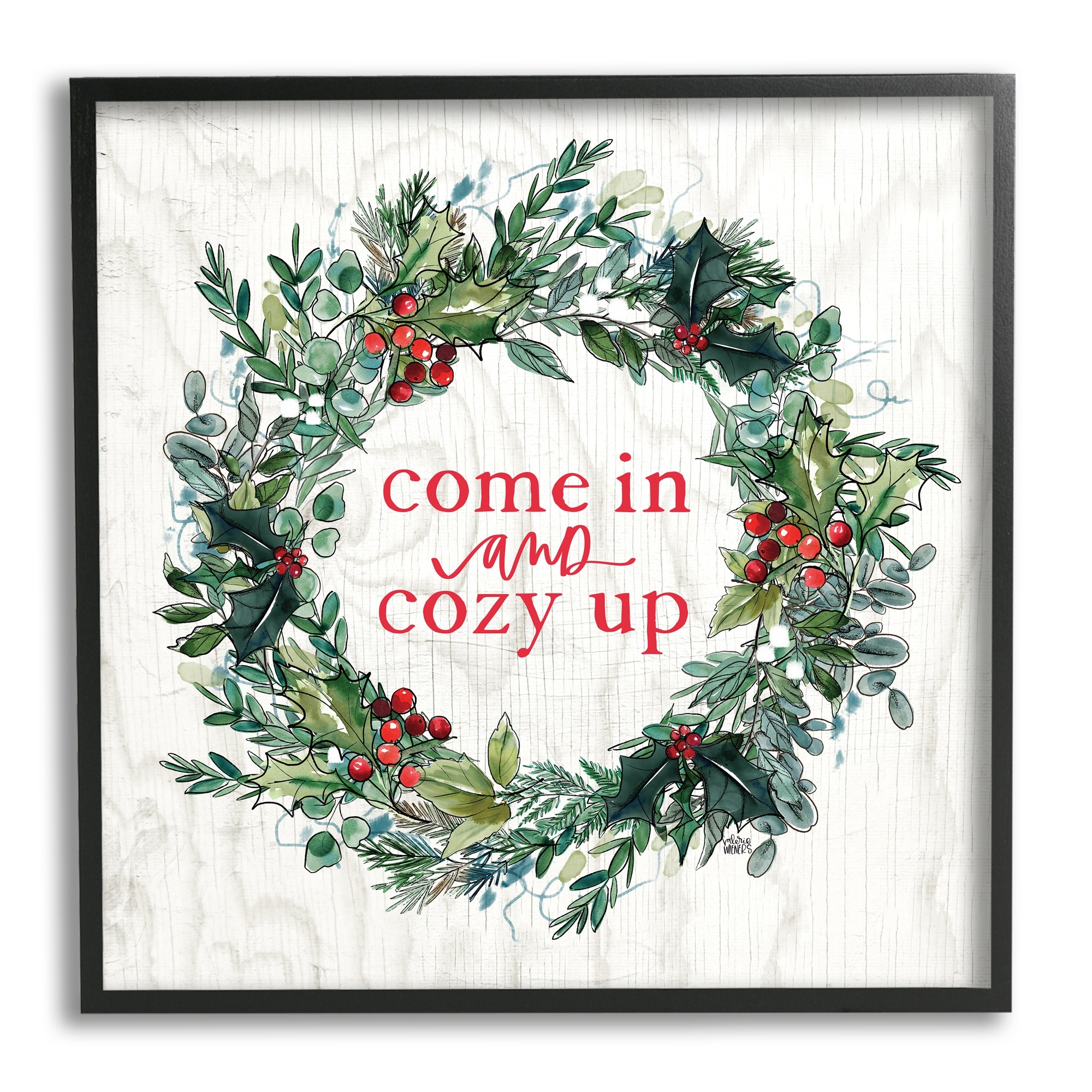 Stupell Come in and Cozy Up Winter Red Holly Framed Wall Art - Green