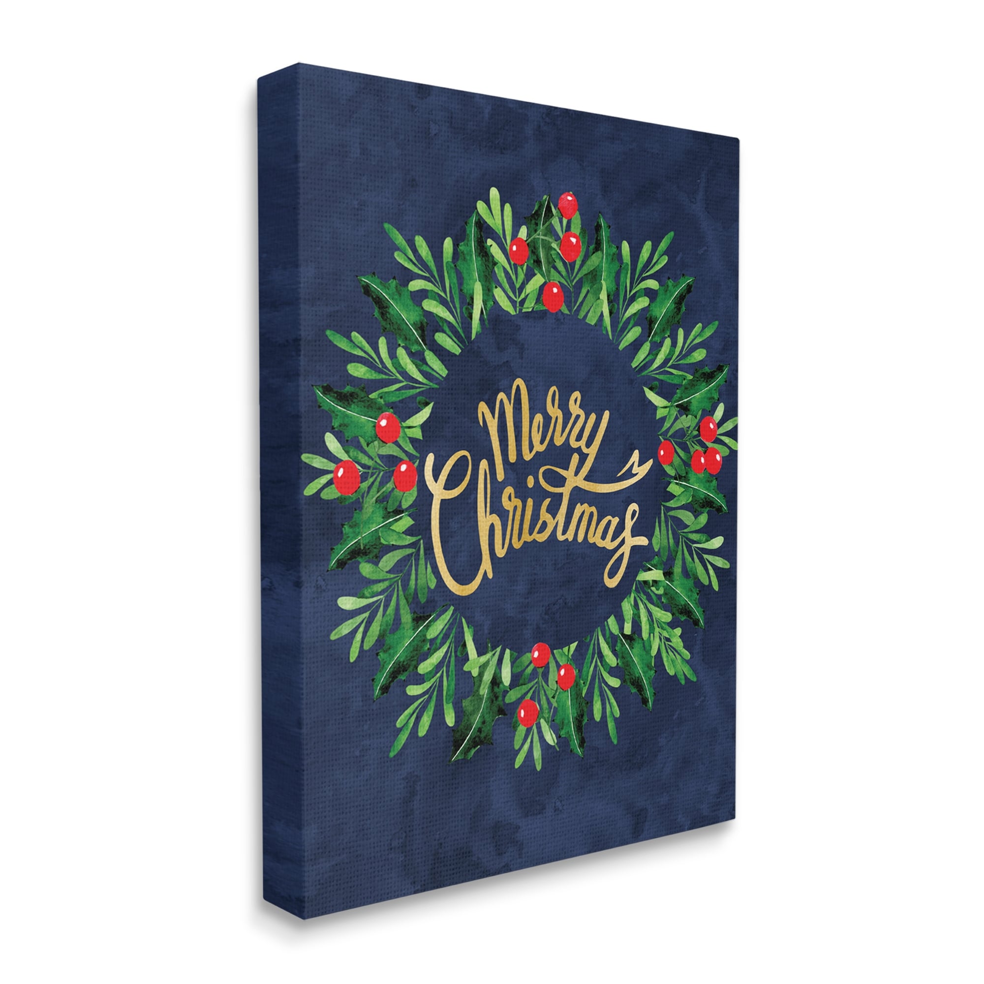 Stupell Industries Playful Red Holly Holiday Wreath Festive Merry Christmas Canvas Wall Art - Blue