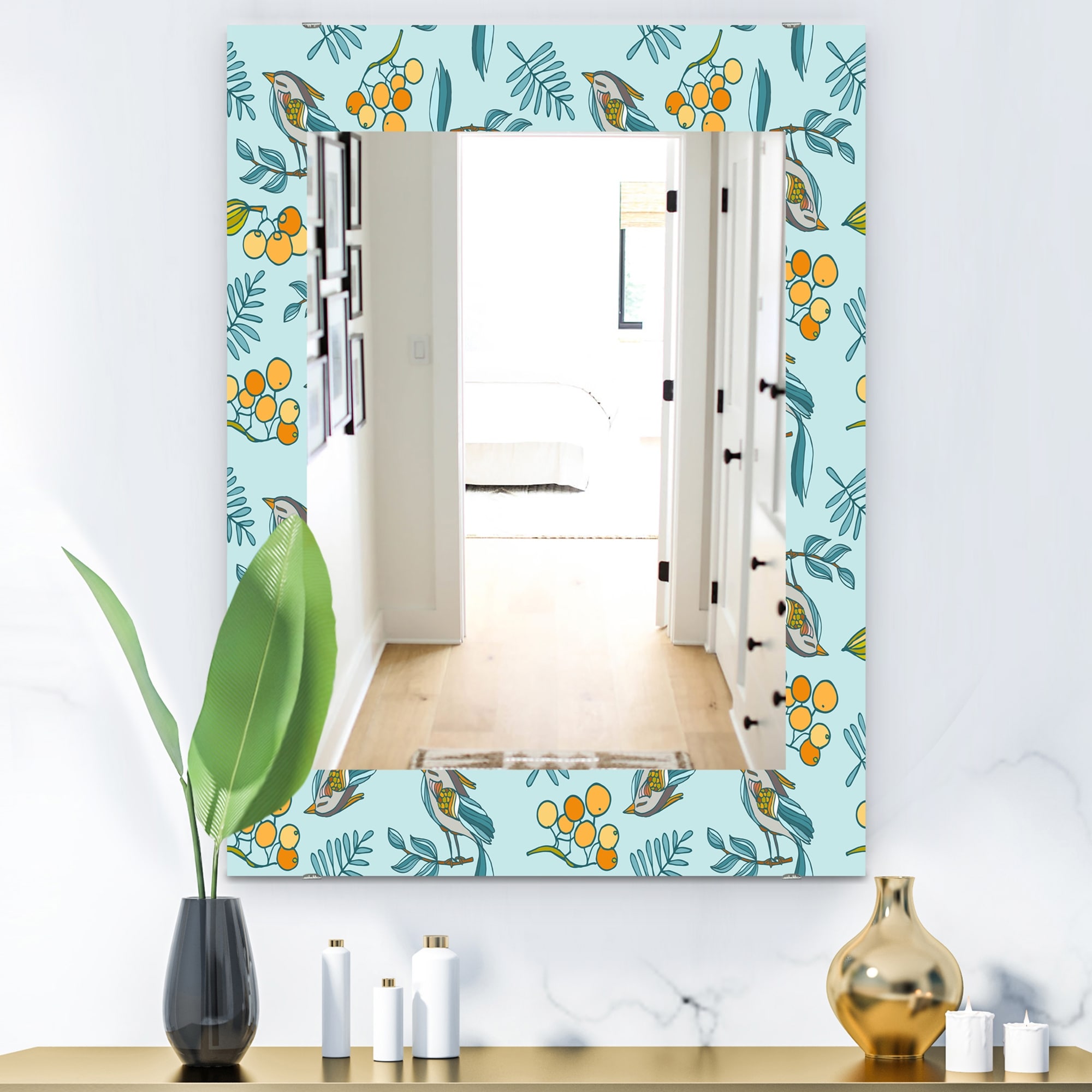 Designart 'Decorative With Birds, Berries' Farmhouse Mirror - Printed Wall Mirror