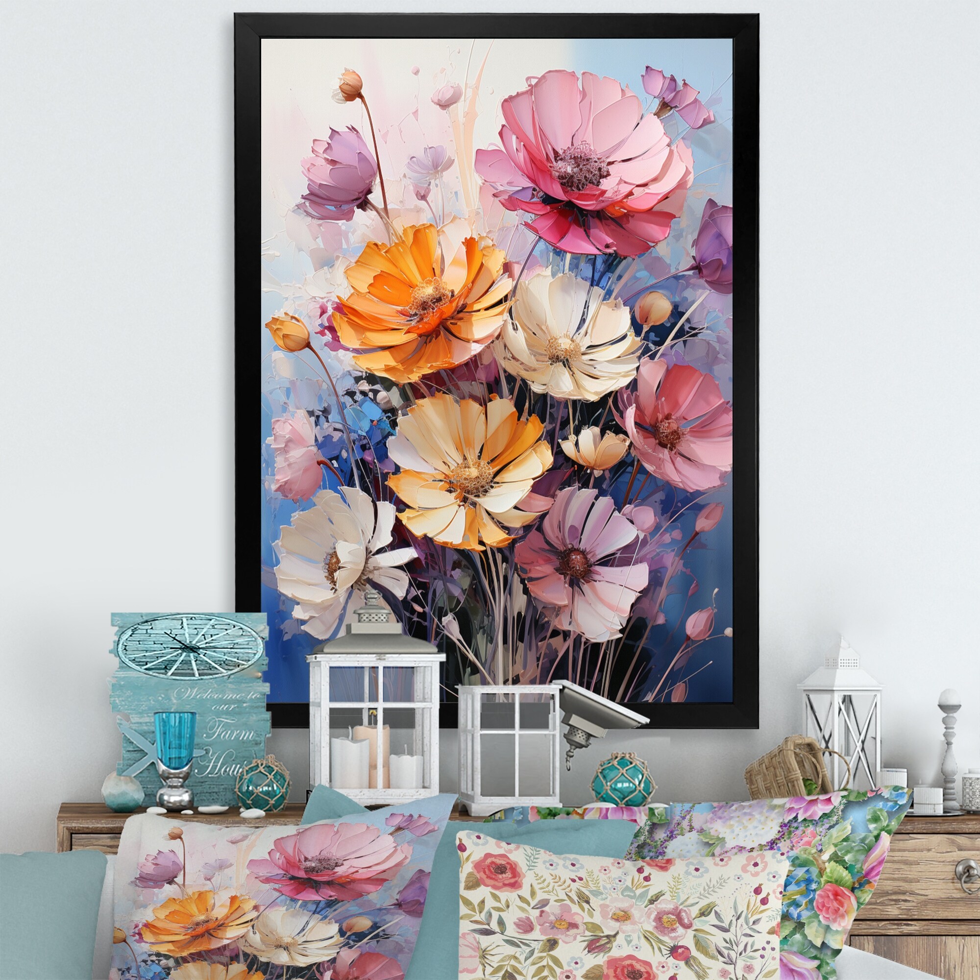 Designart "Cornflowers Representation Multicolored Acrylic I" Cornflowers Framed Canvas Wall Art
