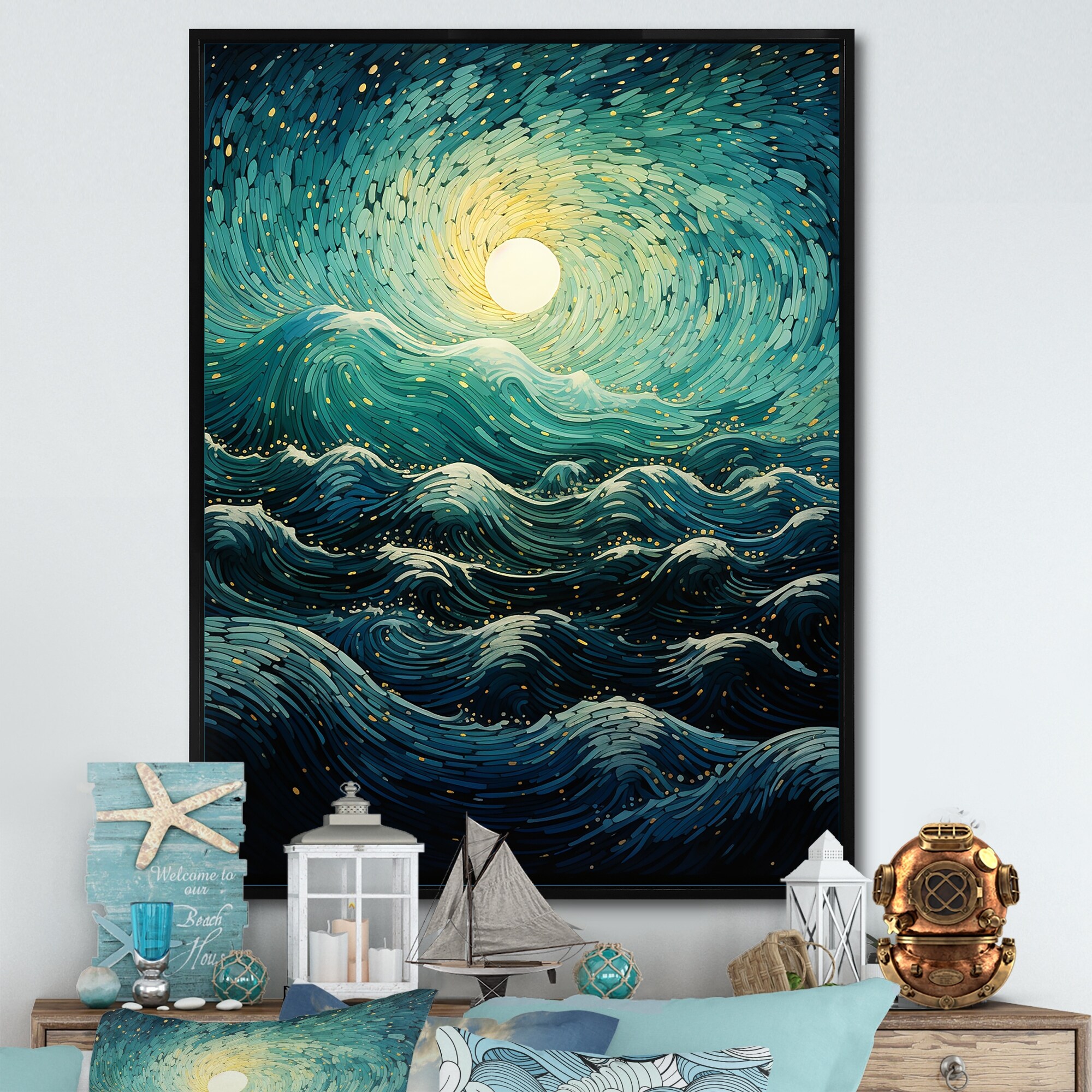 Designart "Teal Yellow Ocean Rhapsody I" Ocean Framed Canvas Art Print