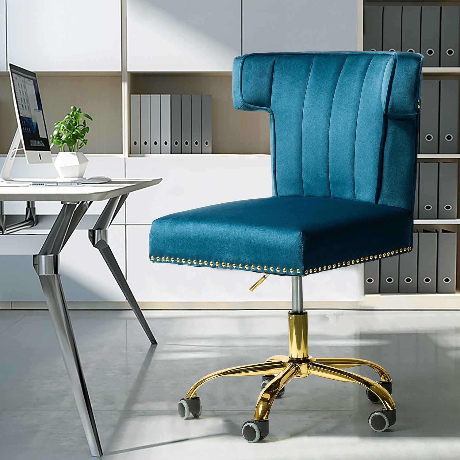 Savas Height Adjustable Swivel Velvet Task Chair with Gold Base by HULALA HOME