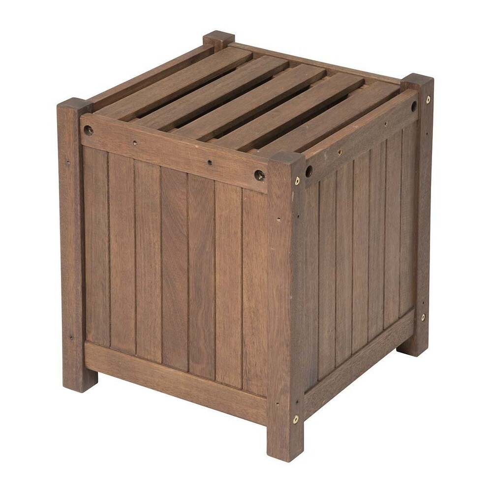 Eucalyptus Wood Square Convertible Planter/Seat with Movable Slatted Base/Top for Patio, Porch, Deck and Landscape