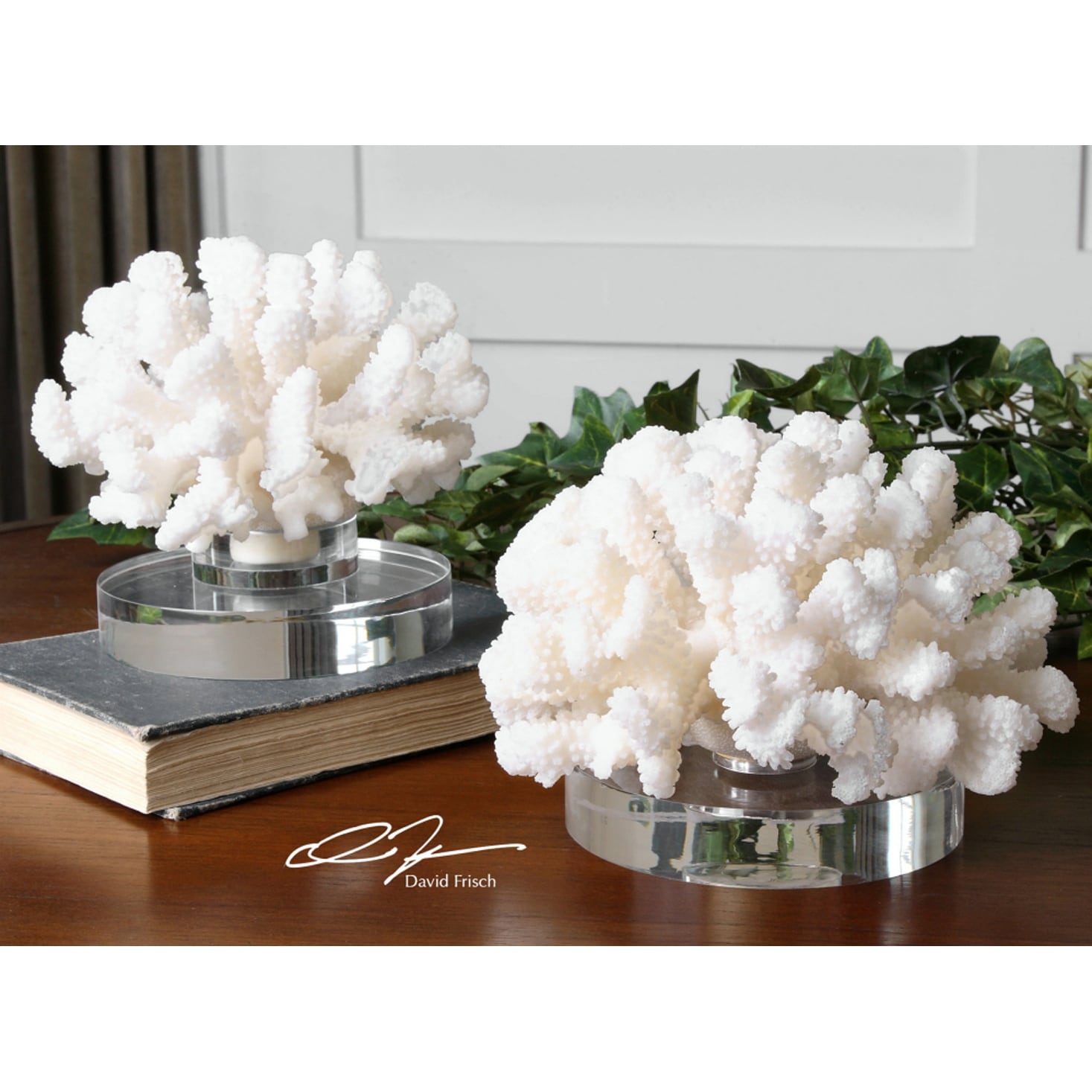 2 Tropical Ocean Hard Creamy White Coral Sculptures Crystal Bases 7"