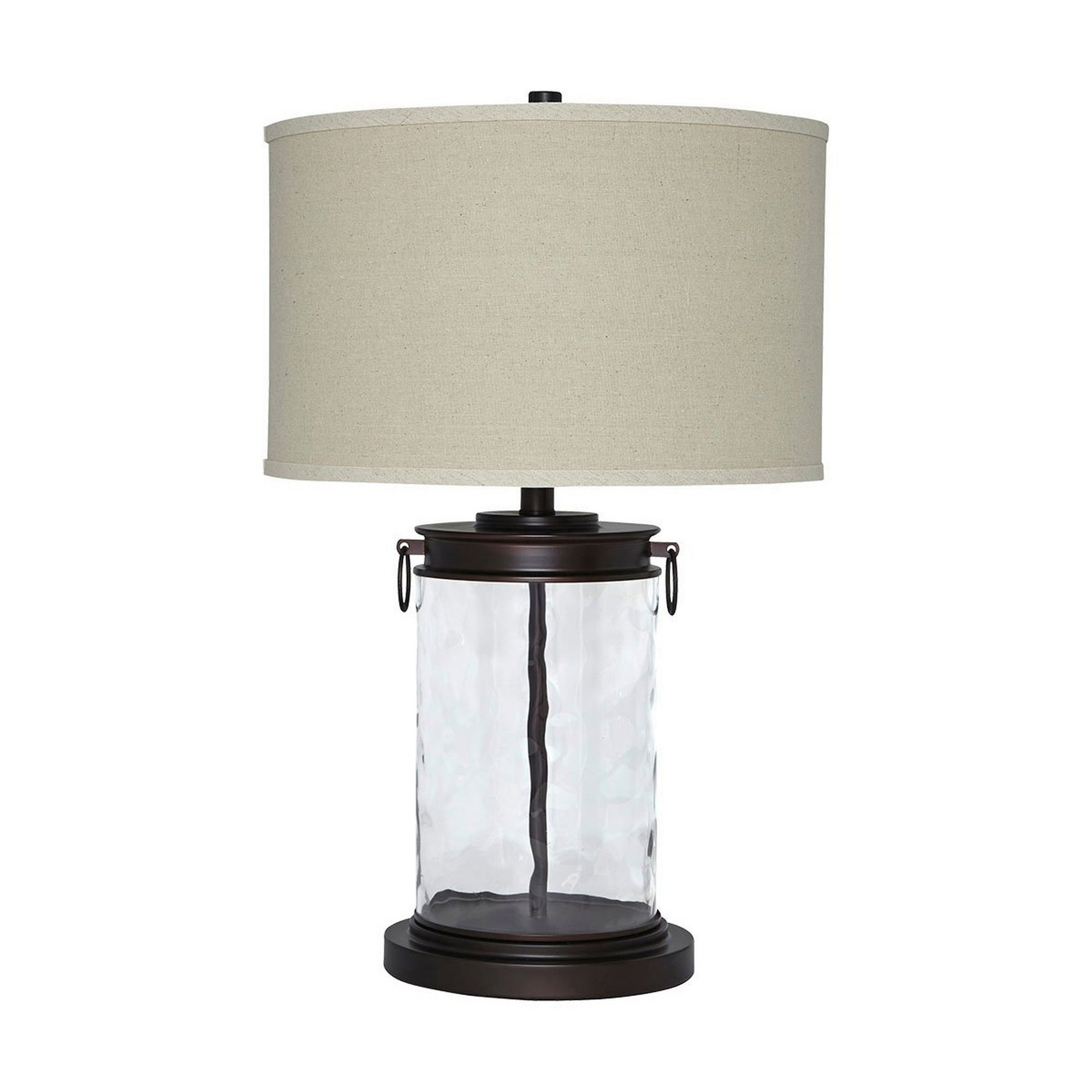Drum Shade Table Lamp with Glass Insert Base, Bronze