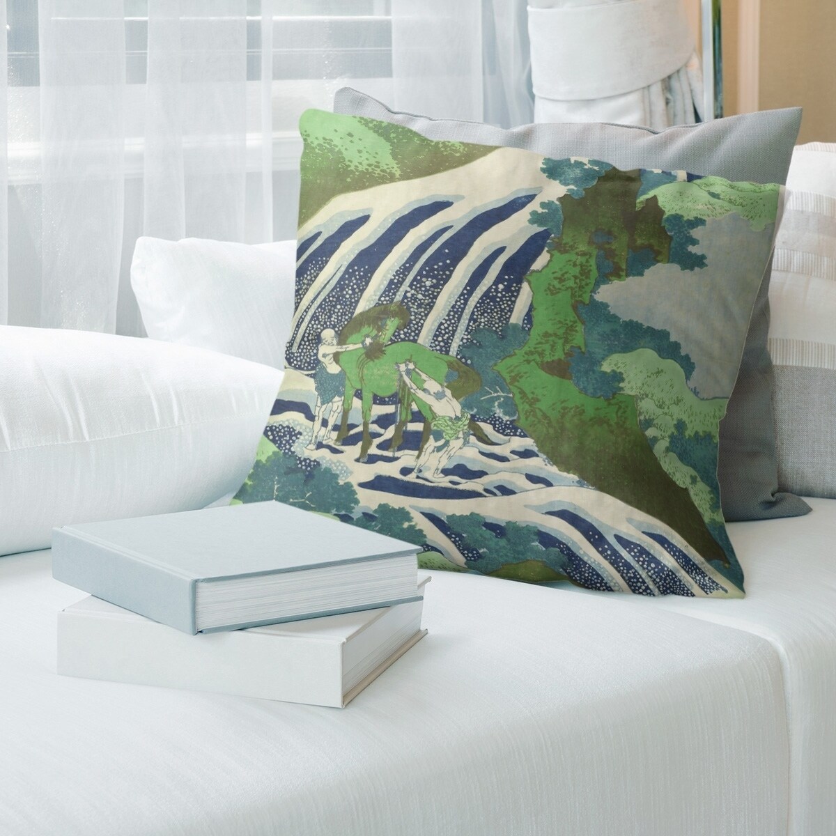 Porch & Den Katsushika Hokusai 'Horse and Waterfall' Throw Pillow