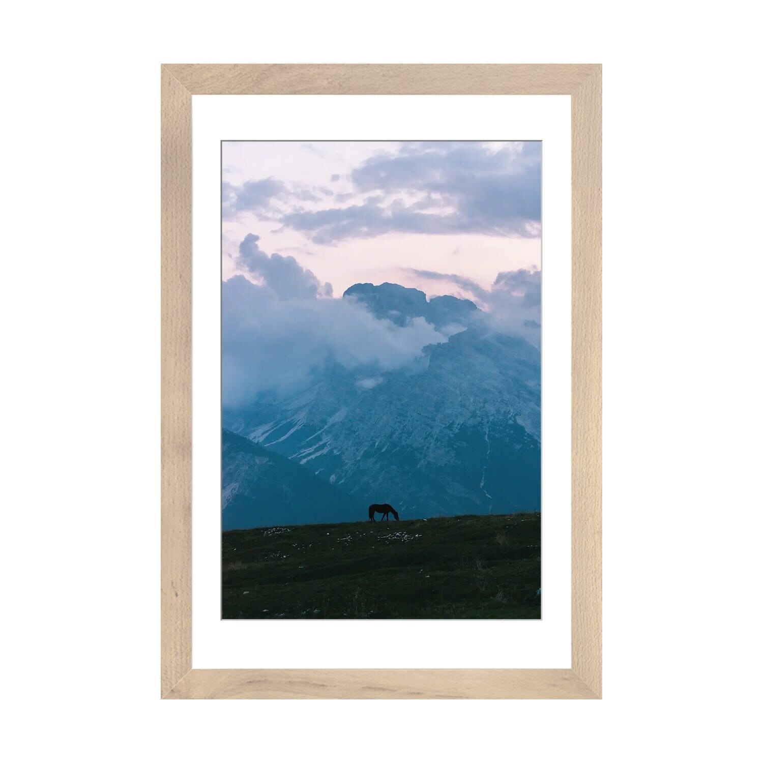 iCanvas "Lone Horse Grazing in Front of a Mountain Range During Blue Hour" by Michael Schauer PFA