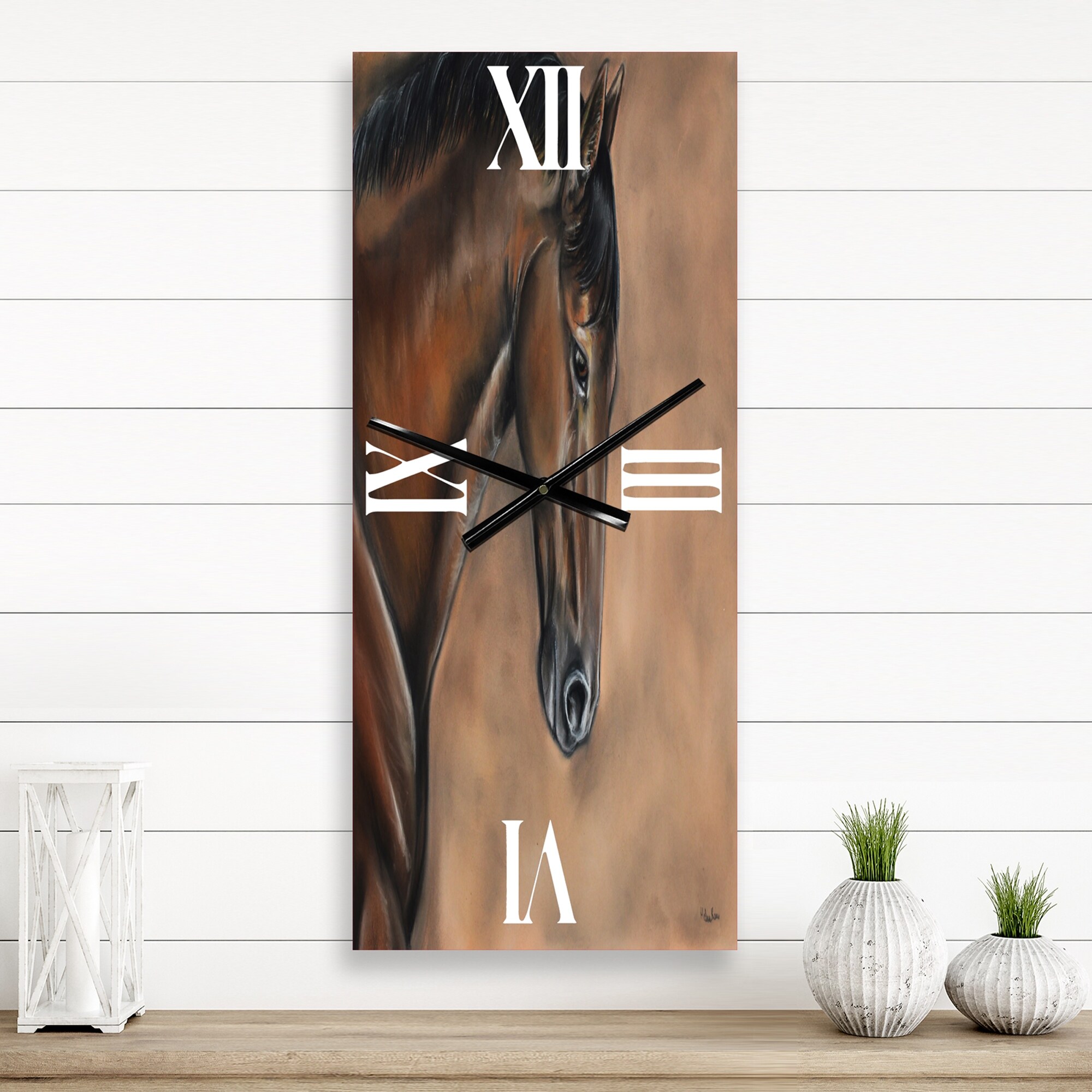 Designart 'Portrait Of a Brown Bay Horse' Farmhouse Metal Wall Clock